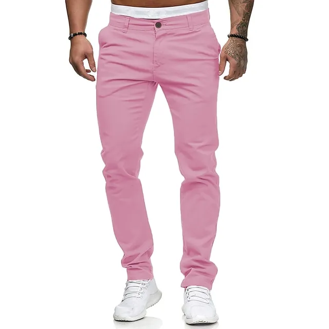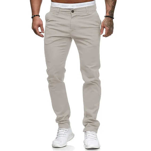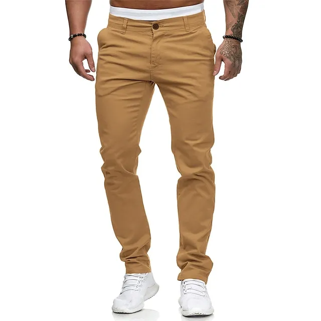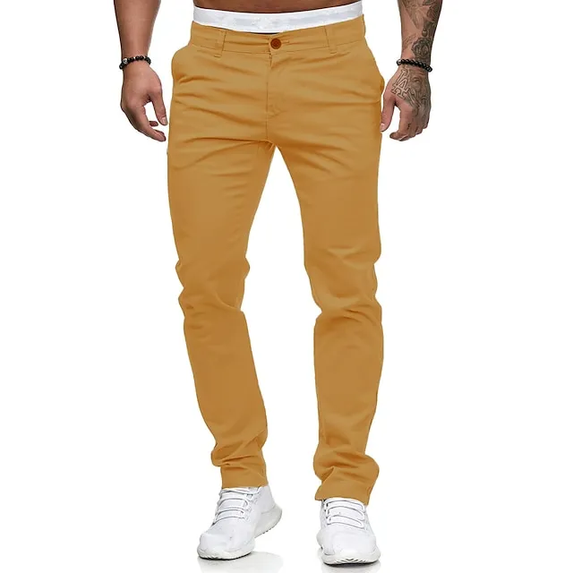 Men’s Trousers Chinos Slacks Jogger Pants Straight Leg Geometry Breathable Soft Ankle-Length Home Daily Cotton Blend Stylish Classic Style Slim Pumpkin Black Mid Waist Micro-elastic