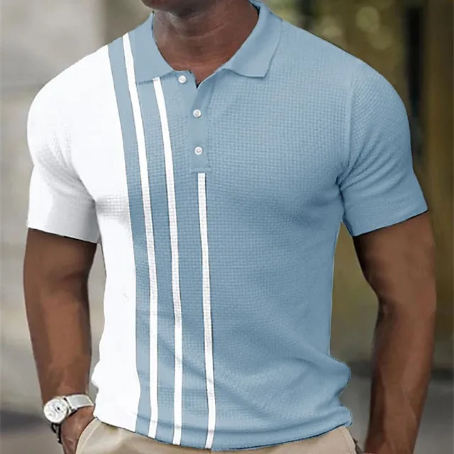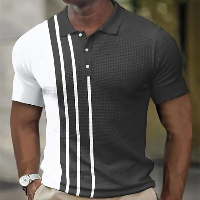 Men’s Waffle Polo Shirt Golf Shirt Work Street Polo Collar Classic Short Sleeve Fashion Casual Striped Button Front Summer Spring Spring & Summer Regular Fit Black Army Green Blue Light Grey Waffle