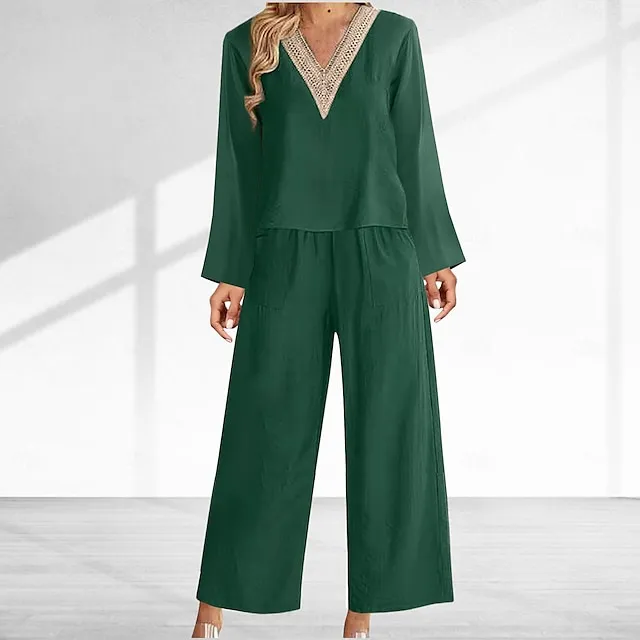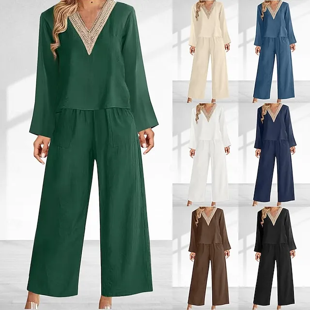 Set Women’s Black White Blue Solid Color Lace 2 Piece Street Daily Fashion V Neck Regular Fit S