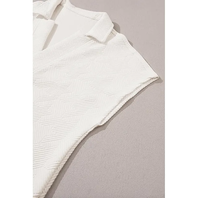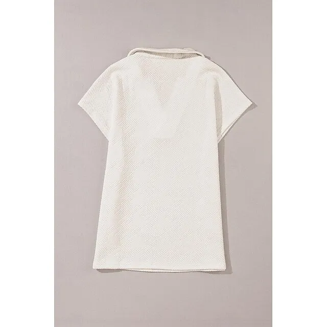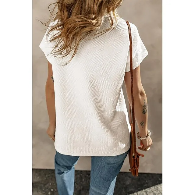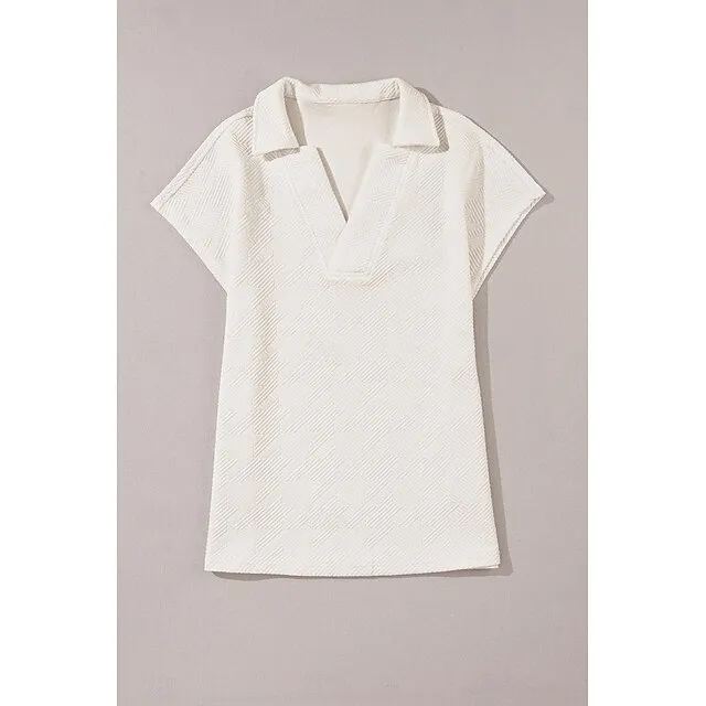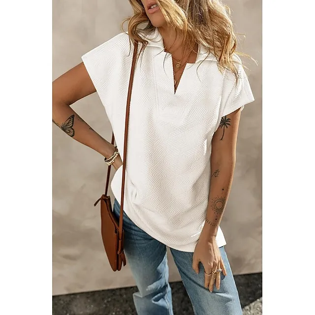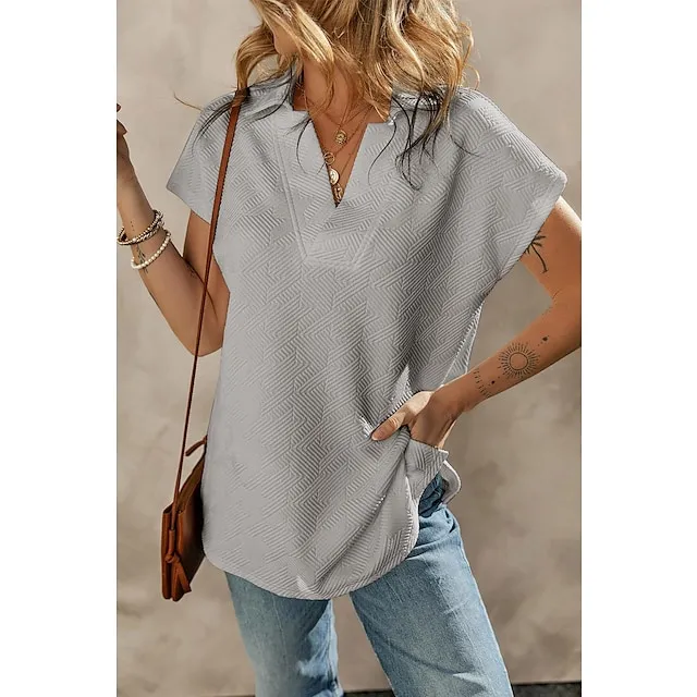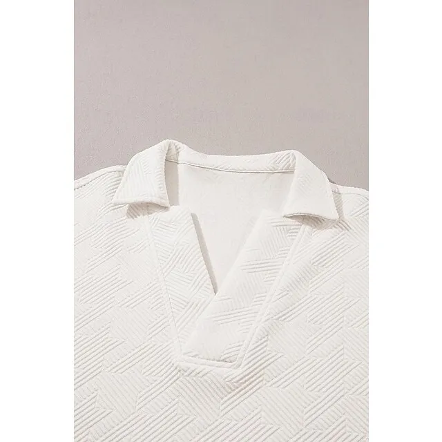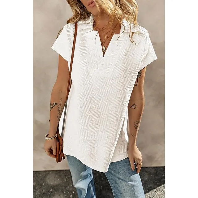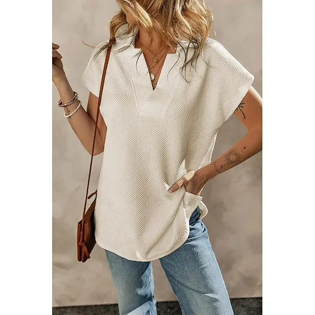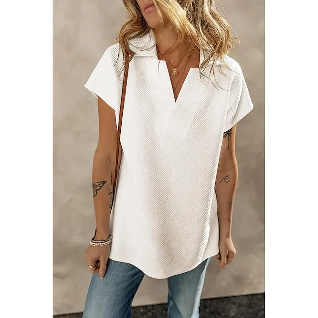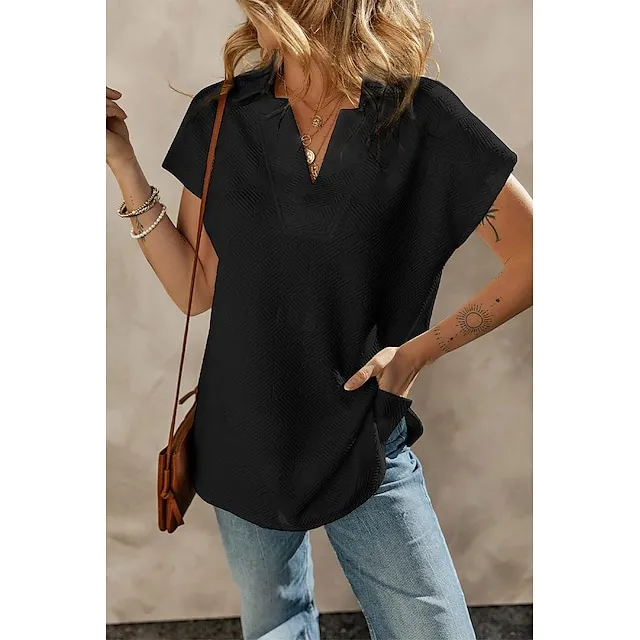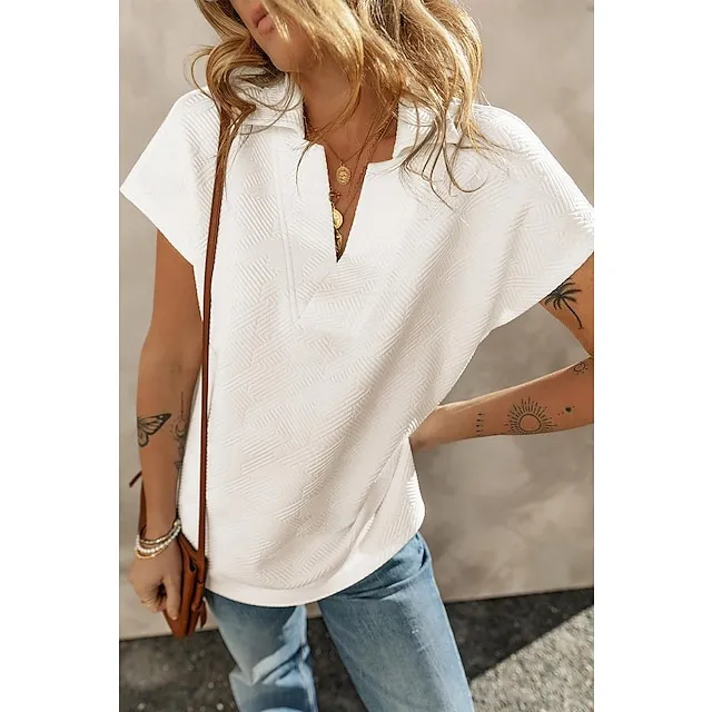 Shirt Blouse Women’s Black White Beige Solid Color Sexy Street Daily Fashion V Neck Waffle Fabric S
