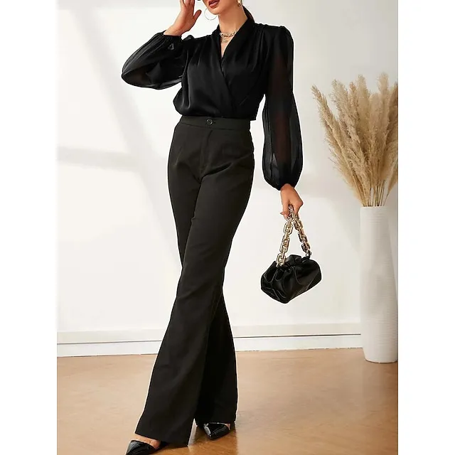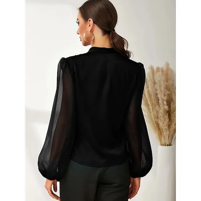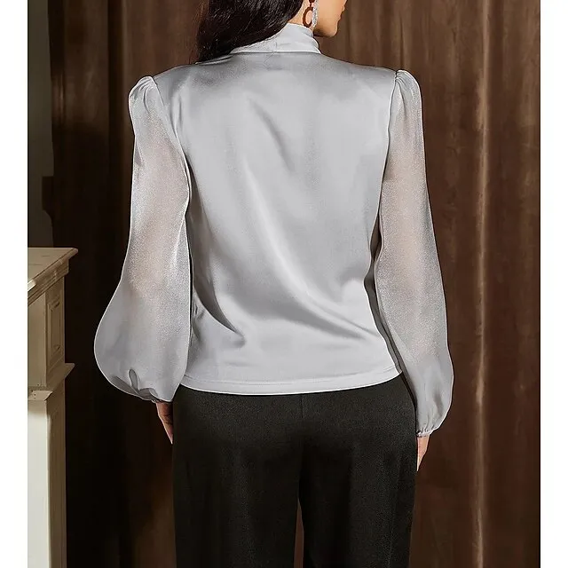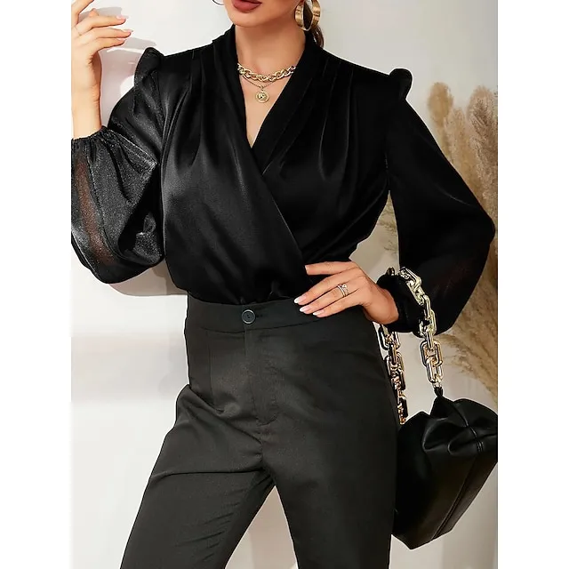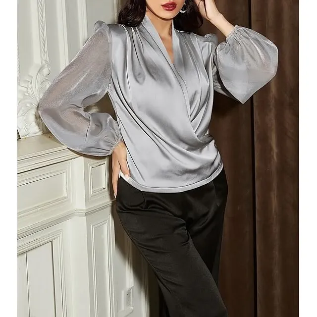 Shirt Blouse Women’s Silver Black Solid / Plain Color Shirred Daily Fashion V Neck Regular Fit S