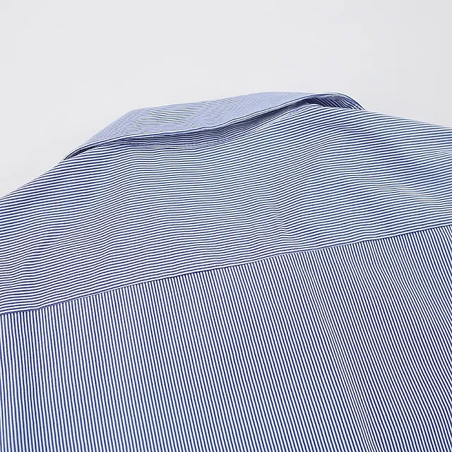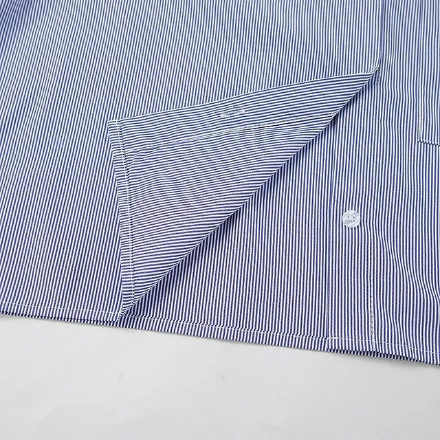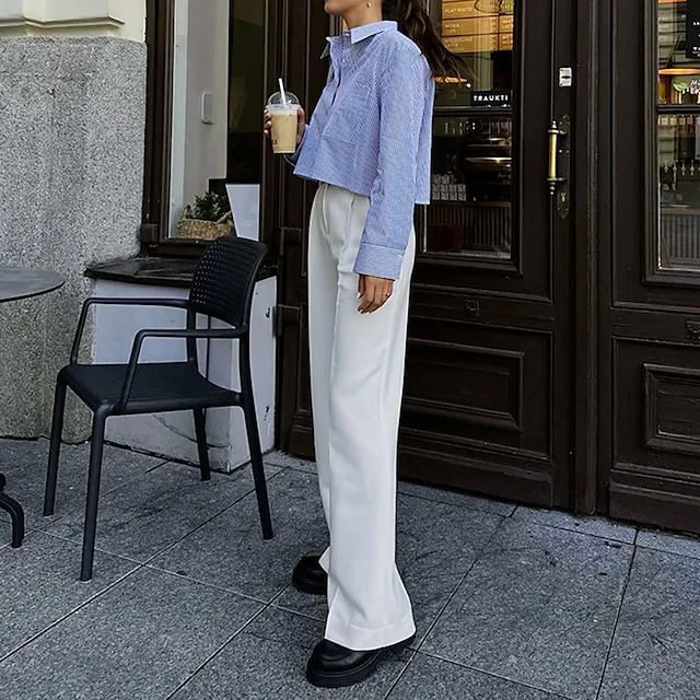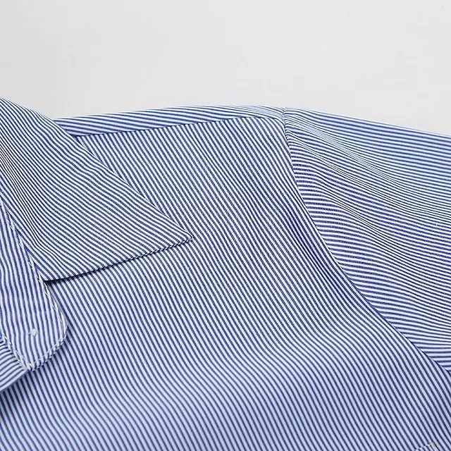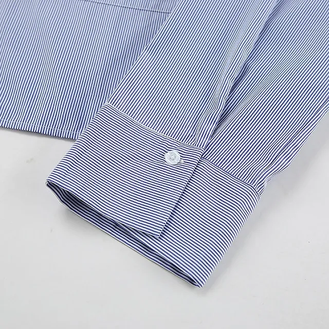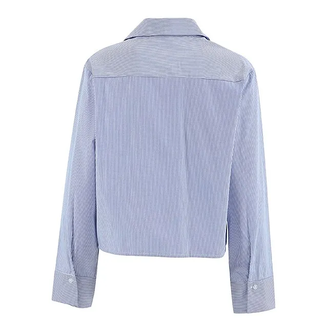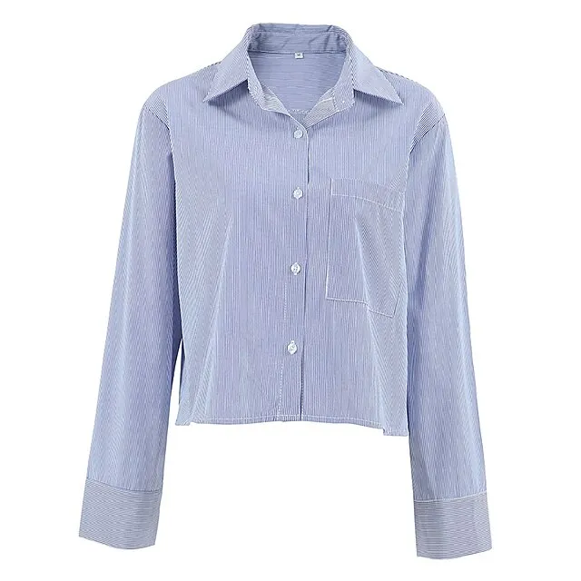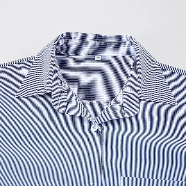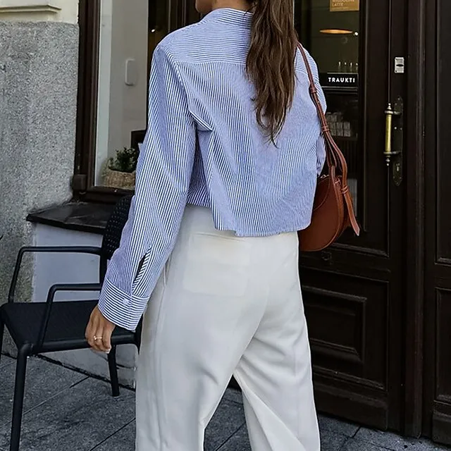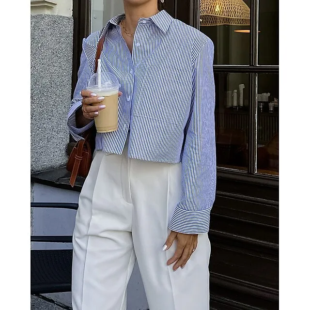 Shirt Crop Top Blouse Women’s Blue Striped Button Print Casual Fashion Shirt Collar Regular Fit S