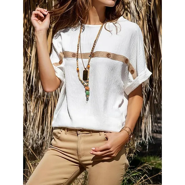 Shirt T shirt Tee Blouse Women’s White Plain Splice Street Daily Basic Modern Round Regular Fit S