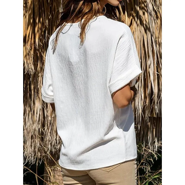 T shirt Tee Women’s Black Blue Purple Solid Color Button Pocket Street Daily Fashion Round Neck Regular Fit S