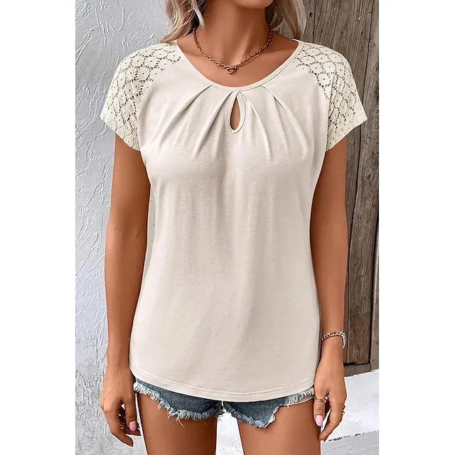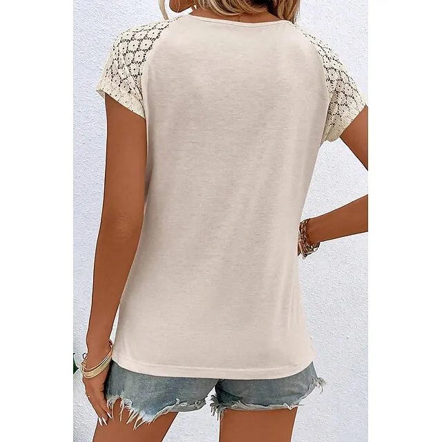 Women’s Lace Shirt Blouse Plain Daily Weekend White Blue Purple Lace Cut Out Half Sleeve Elegant Fashion Basic V Neck Regular Fit