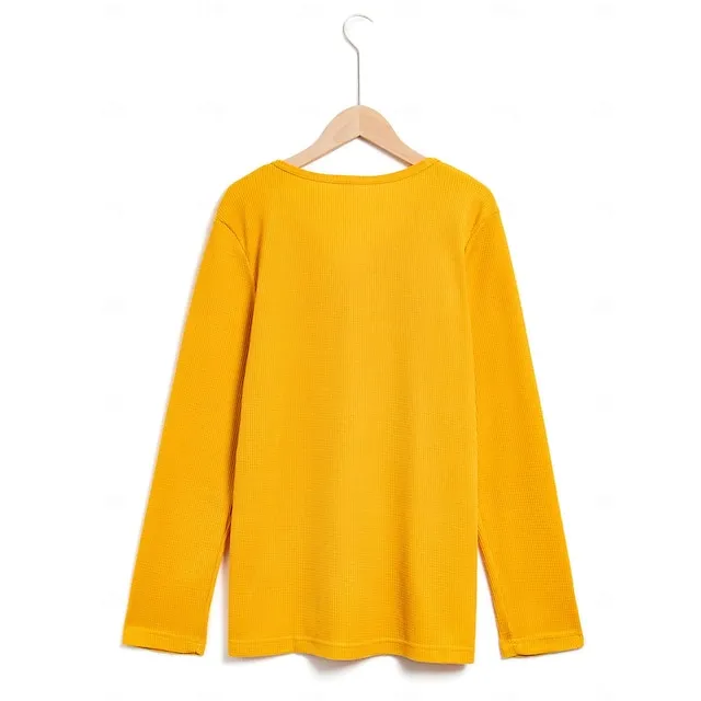 Women's T shirt Tee Plain Casual Beige Long Sleeve Basic Boat Neck Regular Fit Fall & Winter