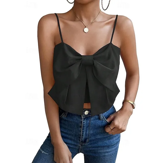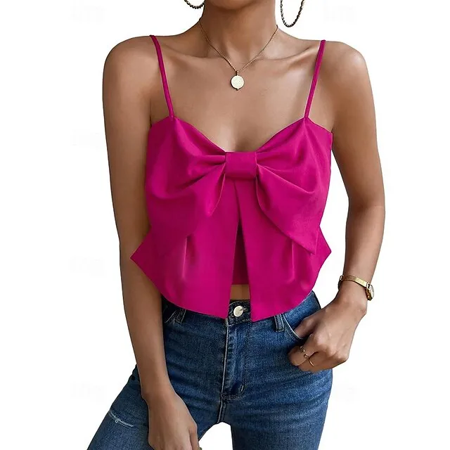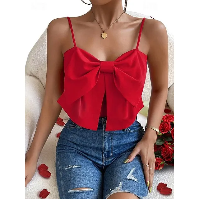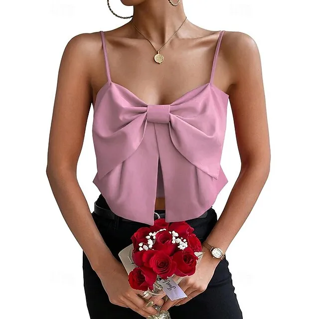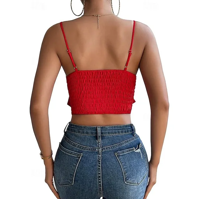 Tank Women’s Black Pink Red Solid Color Split Street Daily Fashion Spaghetti Strap S