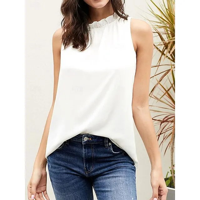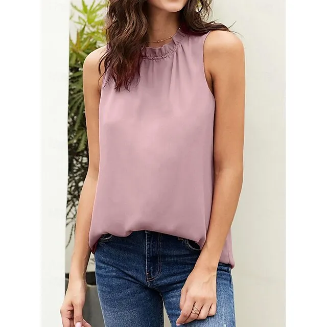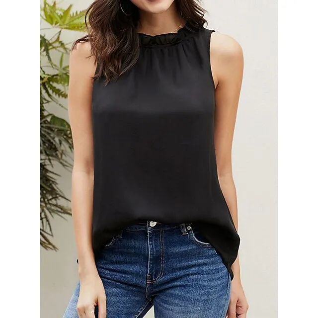 Tank Women’s Black White Pink Solid Color Sexy Street Daily Fashion Round Neck S