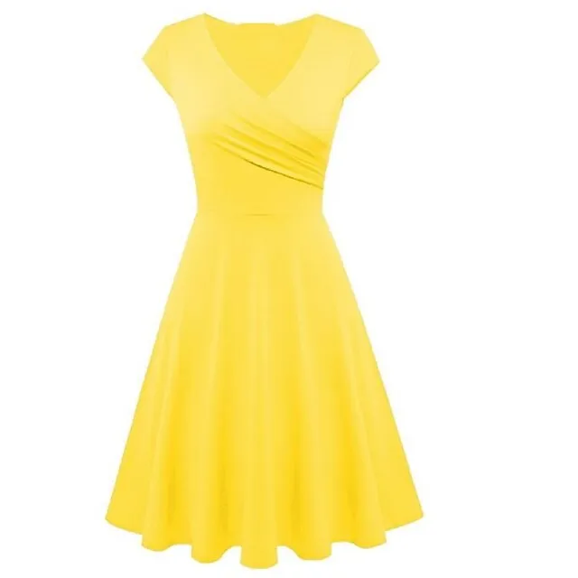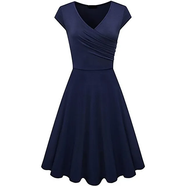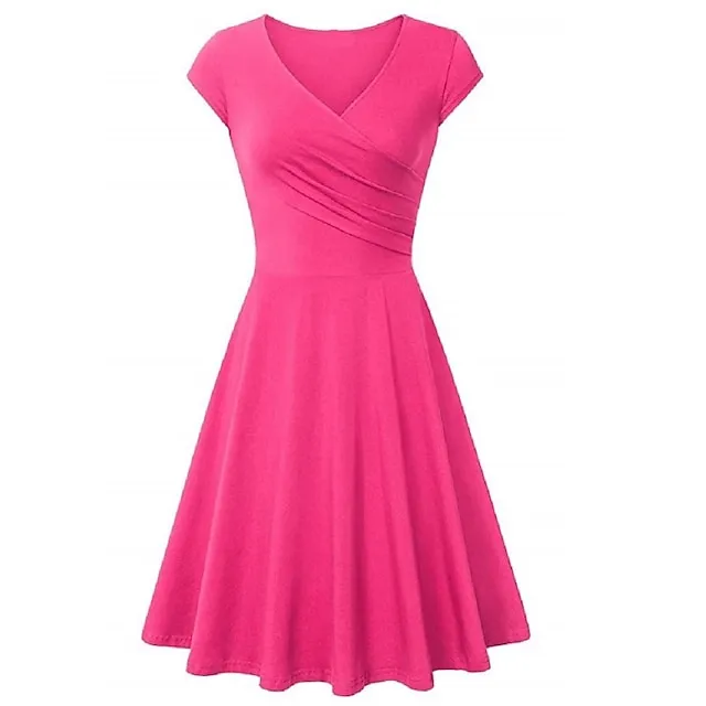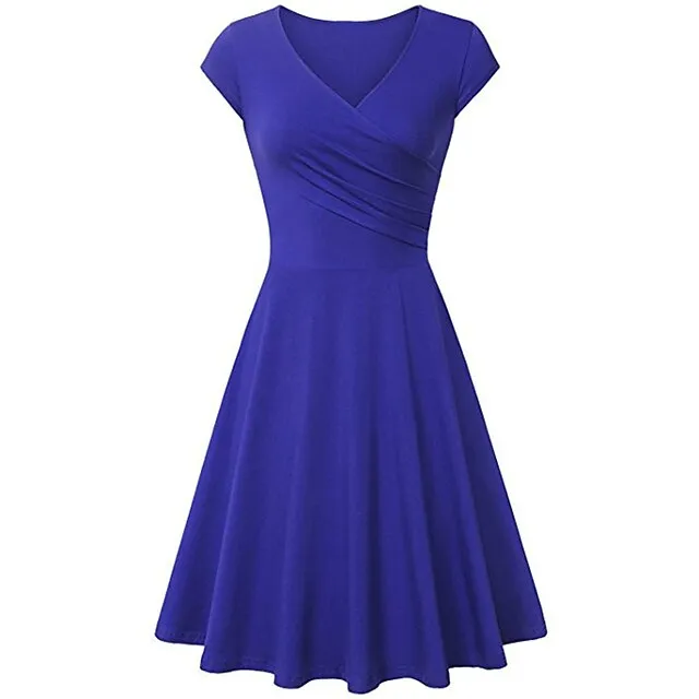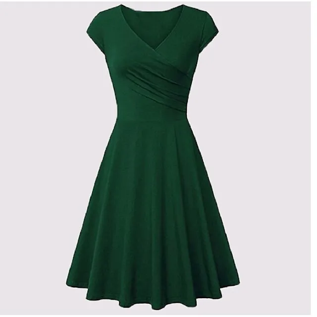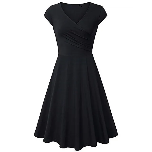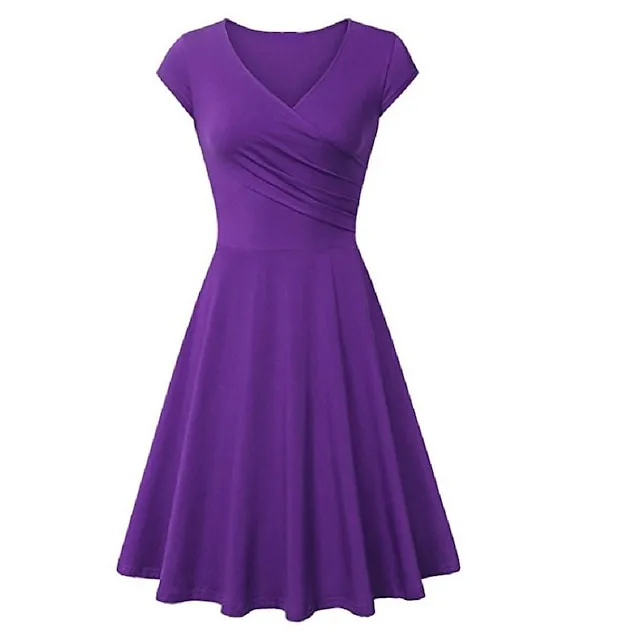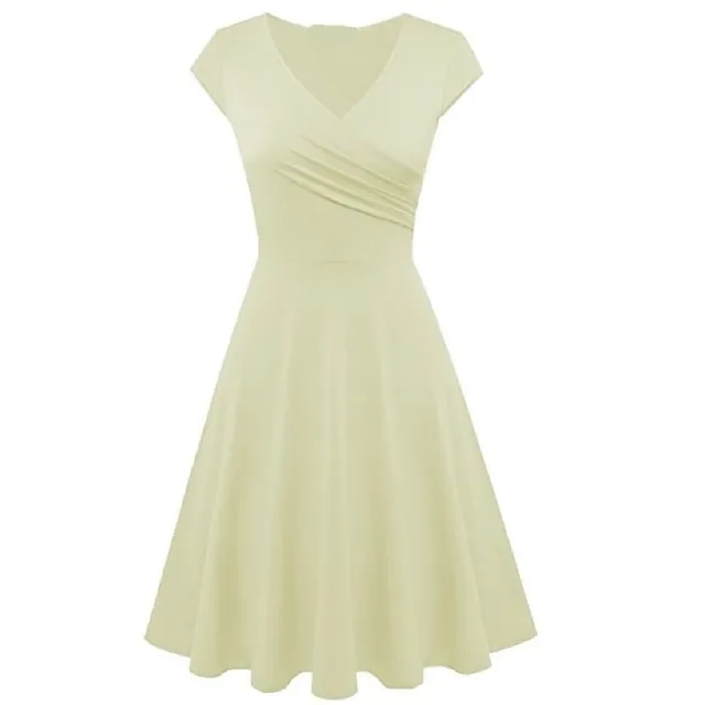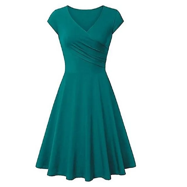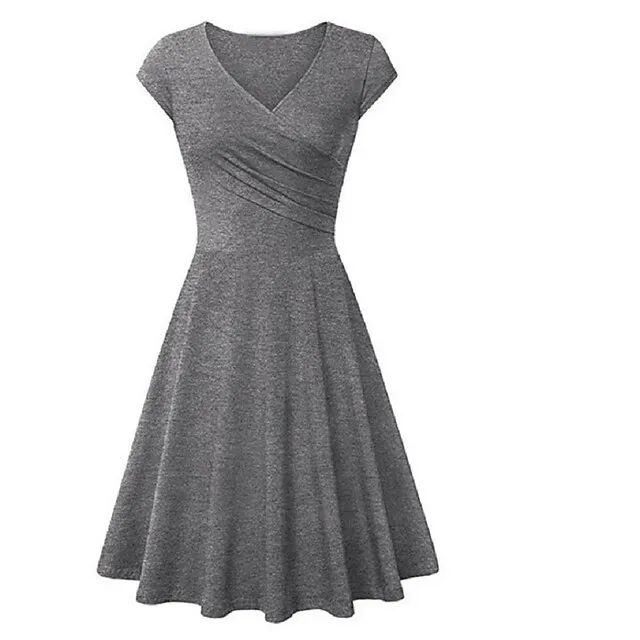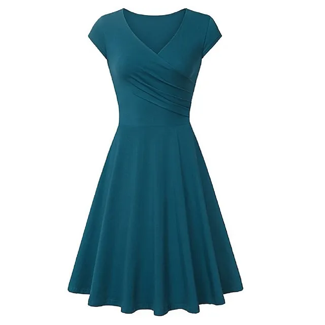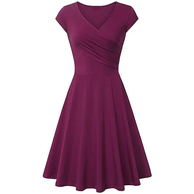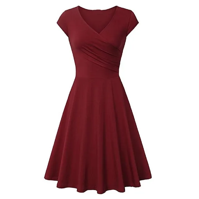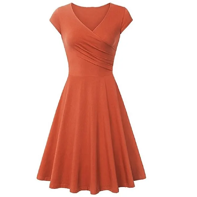 Women‘s A Line Dress Short Mini Dress Beige Short Sleeve Pure Color Ruched Spring Summer V Neck Elegant Classic 2023 4XL