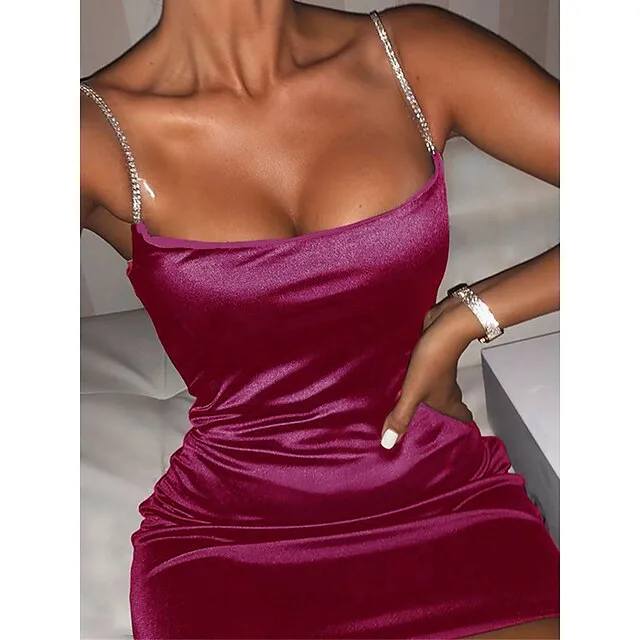 Women’s Black Dress Green Christmas Dress Party Dress Corset Dress Mini Dress Black Wine Fuchsia Sleeveless Pure Color Backless Fall Winter Autumn Spaghetti Strap Christmas
