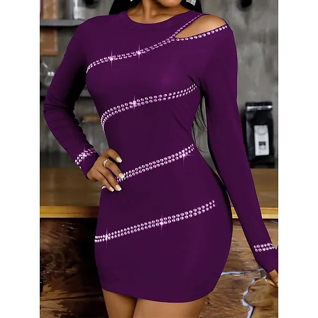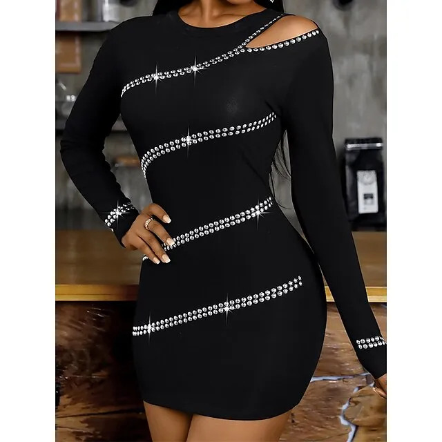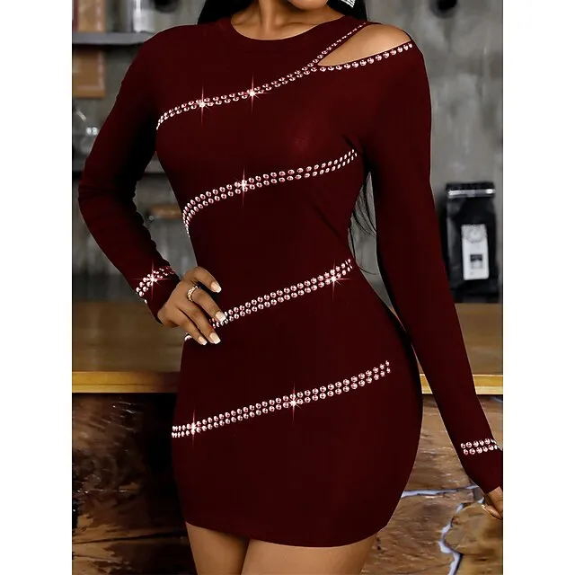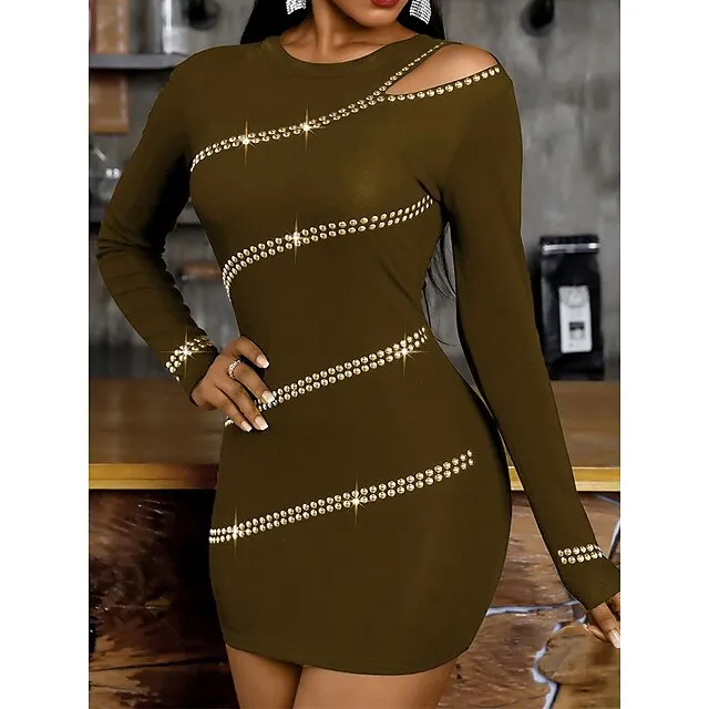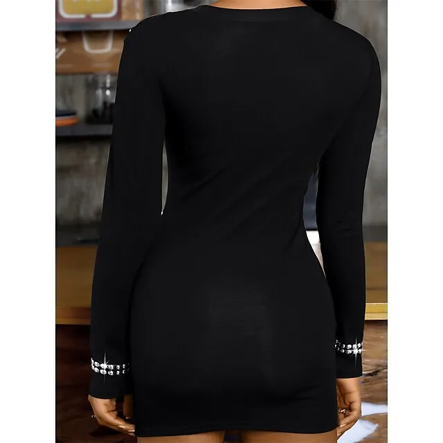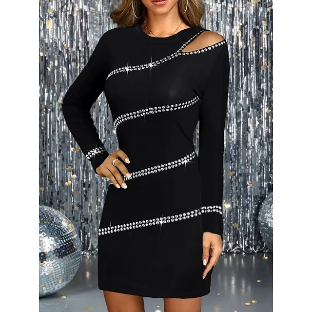 Women’s Black Dress Party Dress Cocktail Dress Mini Dress Black Wine Army Green Long Sleeve Pure Color Cut Out Fall Winter Autumn Crew Neck Fashion Winter Dress Wedding Guest Vacation 2023 S M L XL