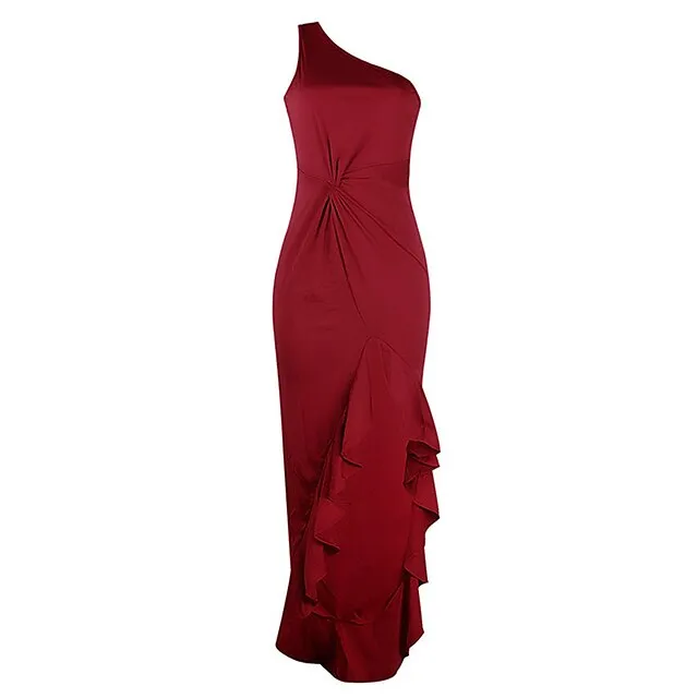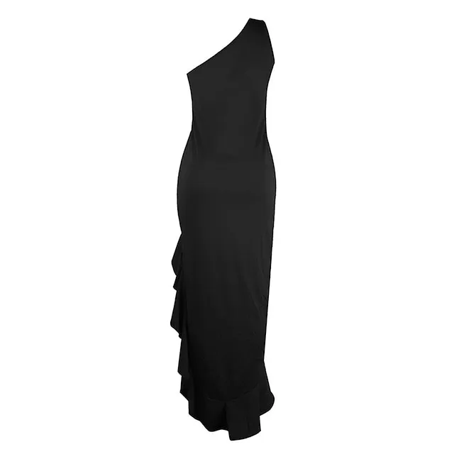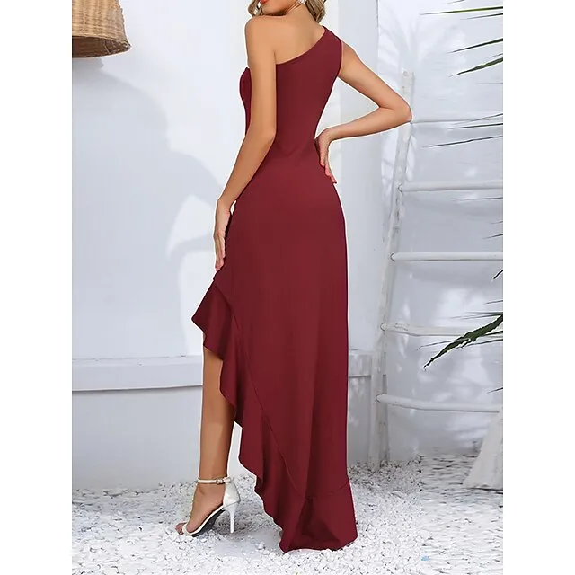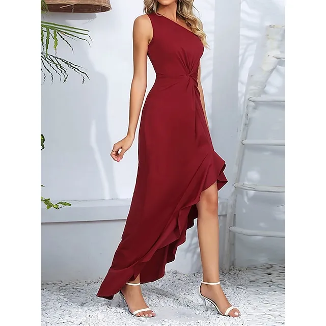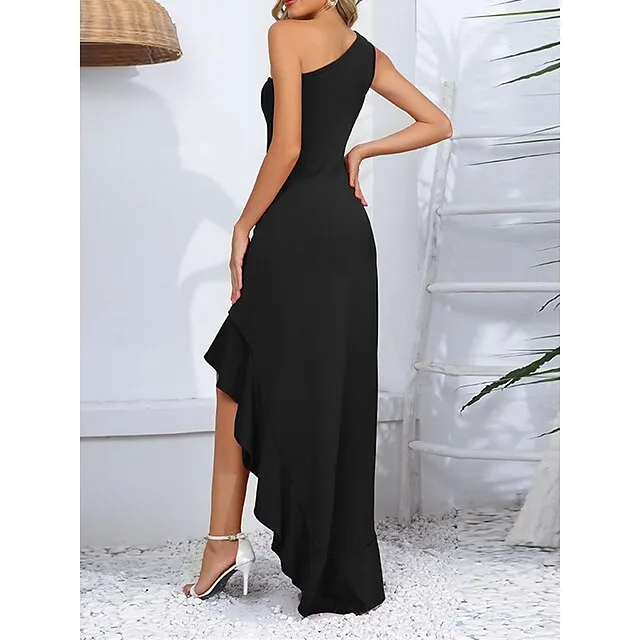 Women’s Black Dress Prom Dress Party Dress Long Dress Maxi Dress Black Red Sleeveless Plain Ruffle Summer Spring Fall One Shoulder Party Winter Dress Wedding Guest Birthday S M L XL