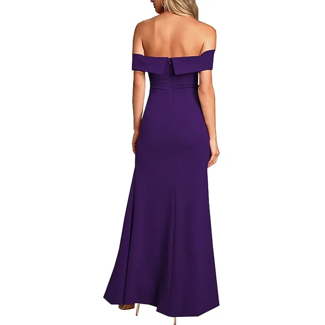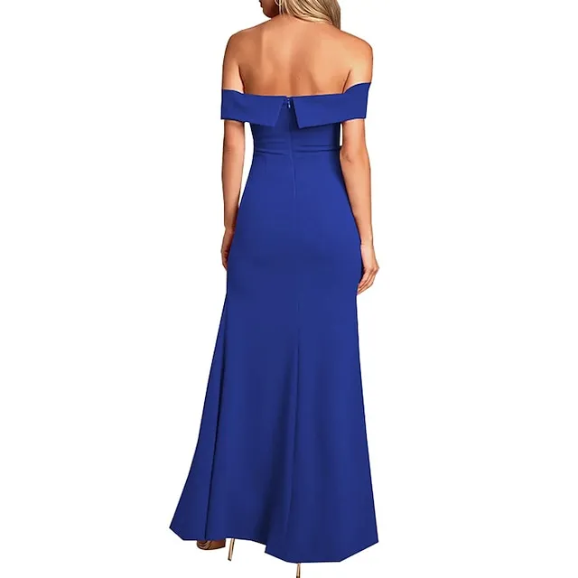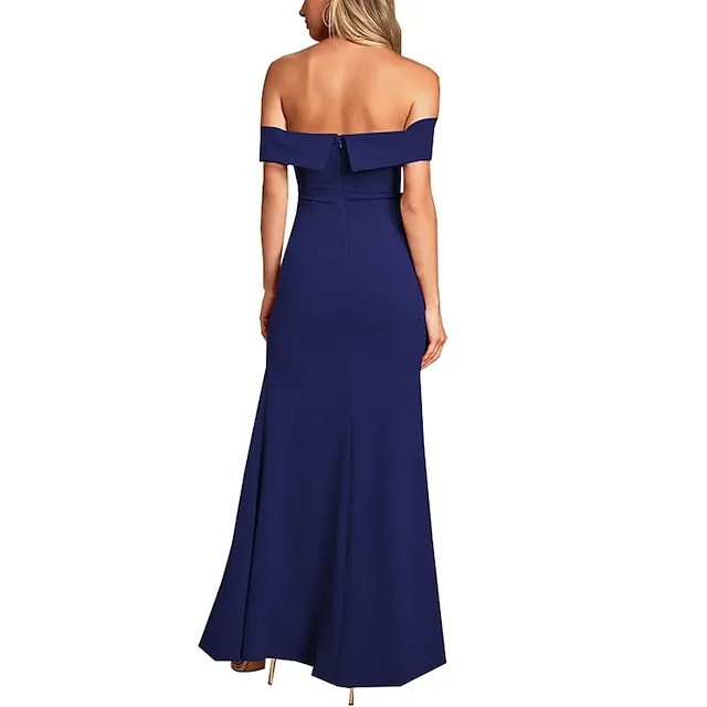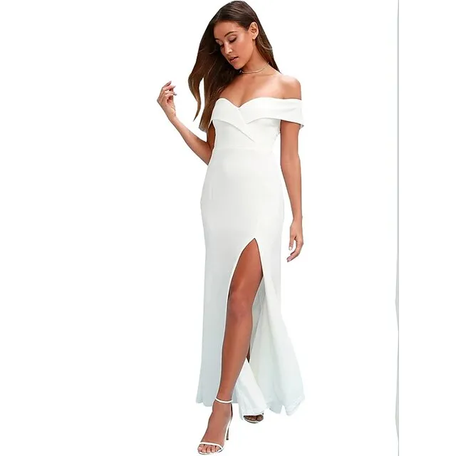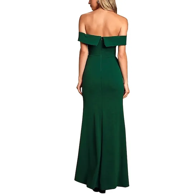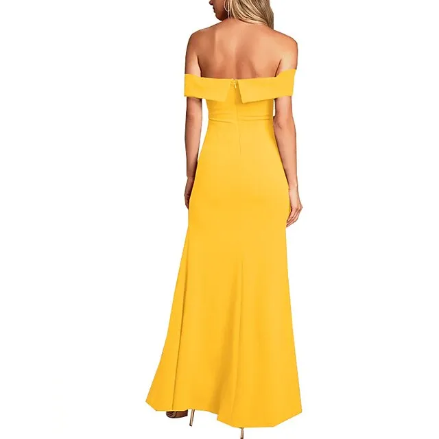 Women’s Black Dress Prom Dress Party Dress Long Dress Maxi Dress Black White Yellow Short Sleeve Plain Ruched Spring Fall Winter Off Shoulder Formal Winter Dress Wedding Guest Evening Party S M L XL