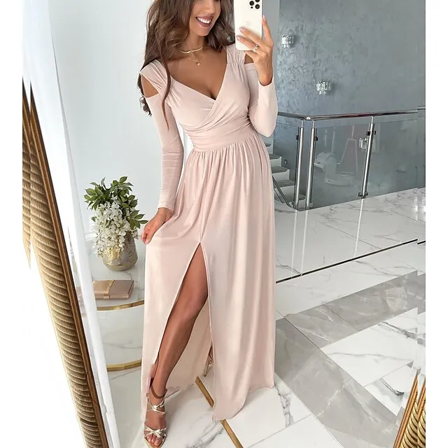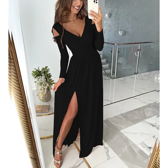 Women‘s Black Dress Prom Dress Party Dress Sheath Dress A Line Dress Maxi long Dress Long Sleeve Ruched Spring Fall V Neck Elegant & Luxurious Winter Dress