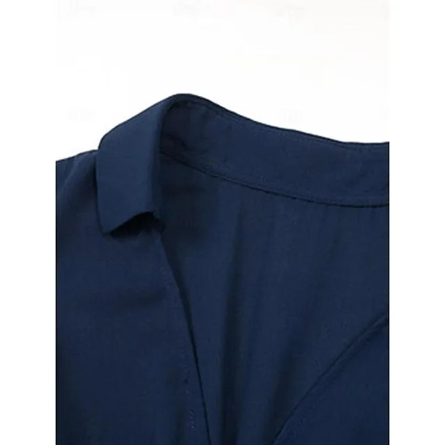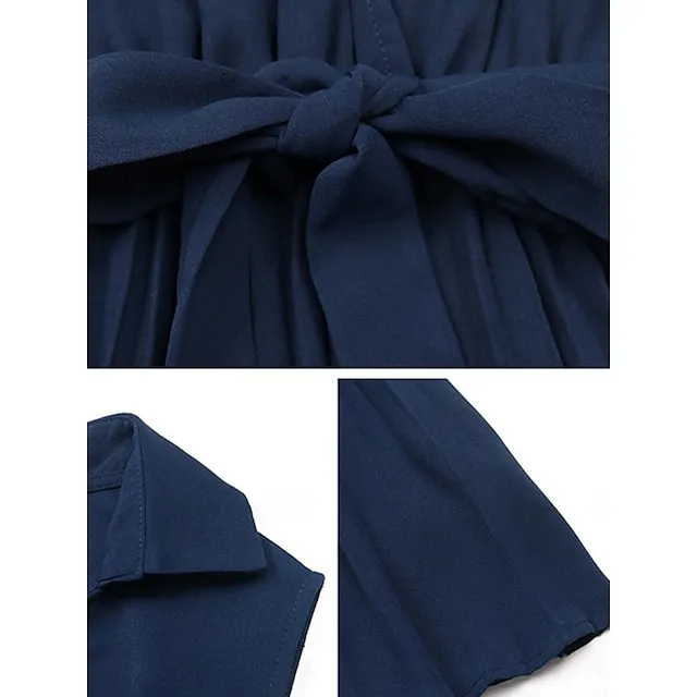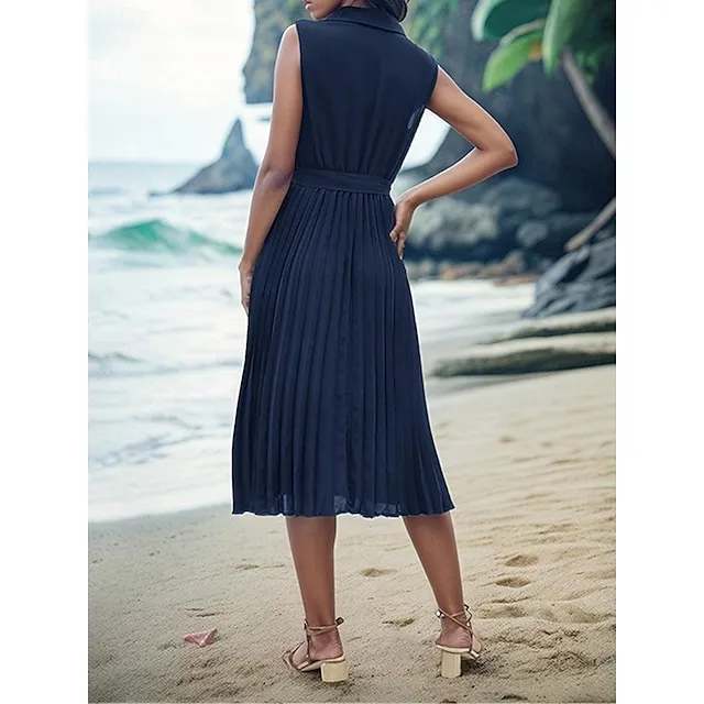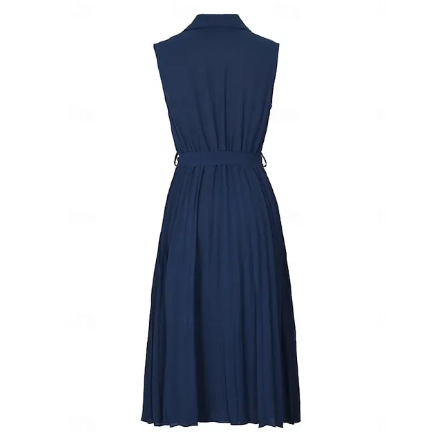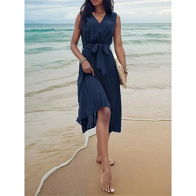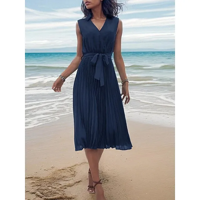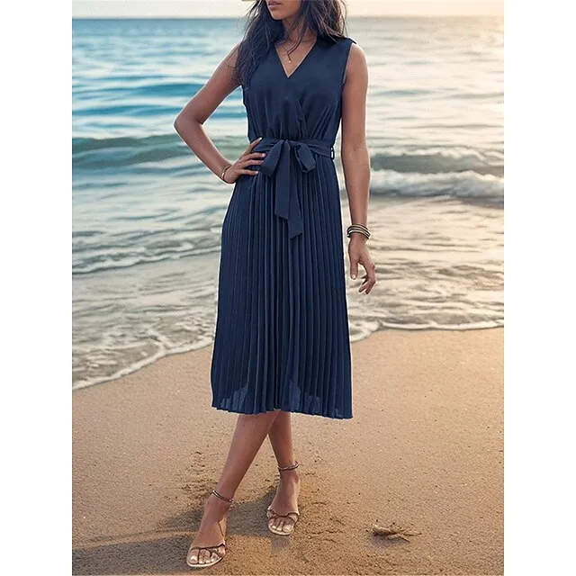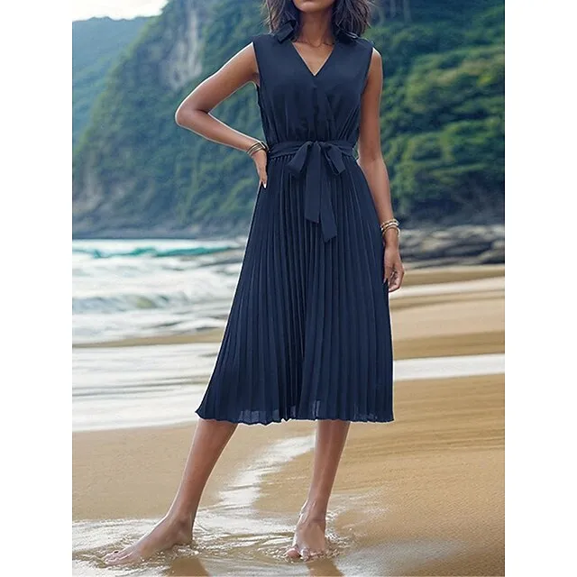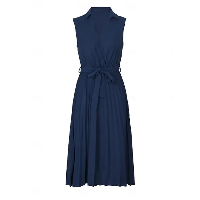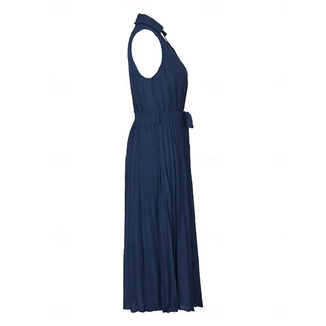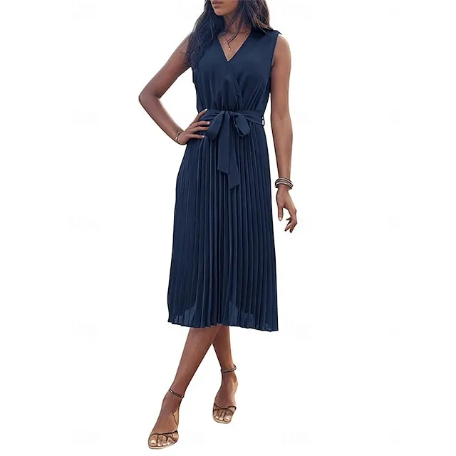 Women’s Casual Dress A Line Dress Tank Dress Midi Dress Lace up Pleated Work Street Date Elegant Streetwear V Neck Sleeveless Loose Fit Navy Blue Color S M L XL Size