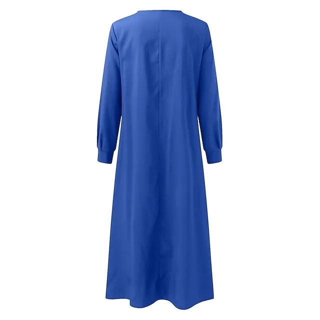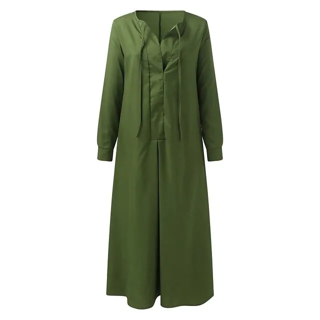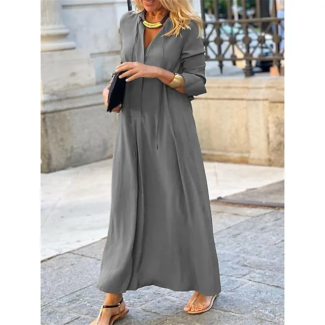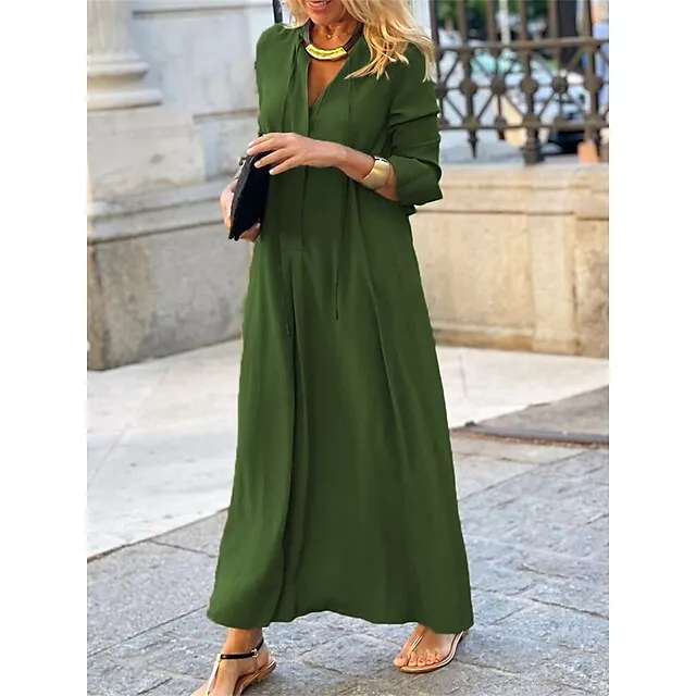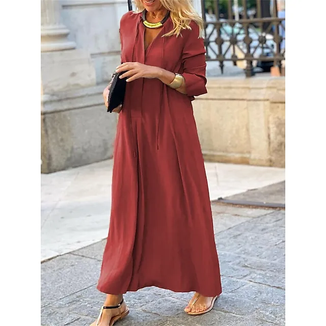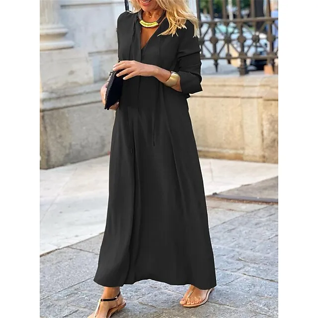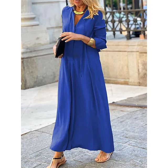 Women’s Casual Dress Plain Dress Spring Dress Long Dress Maxi Dress Ruched Daily Date Going out Active Fashion V Neck Long Sleeve 2023 Regular Fit Black Red Royal Blue Color S M L XL XXL Size