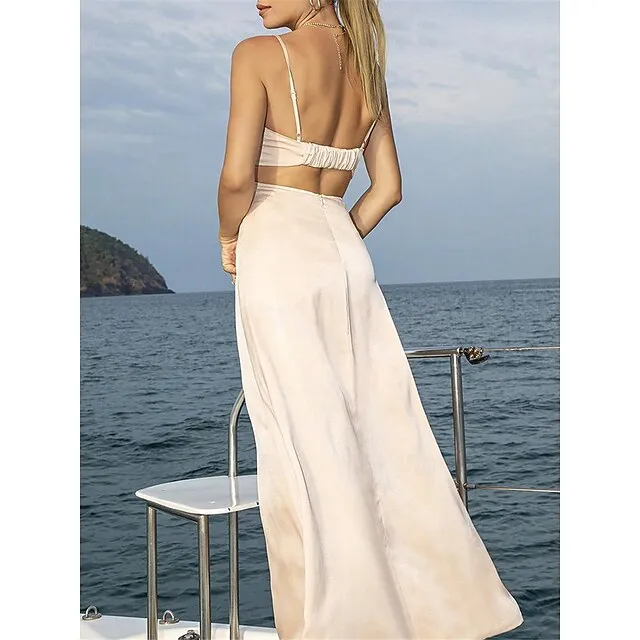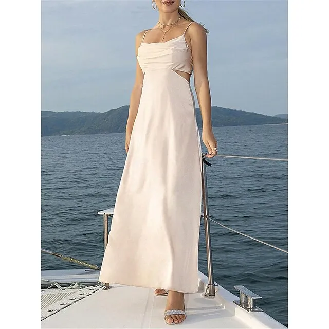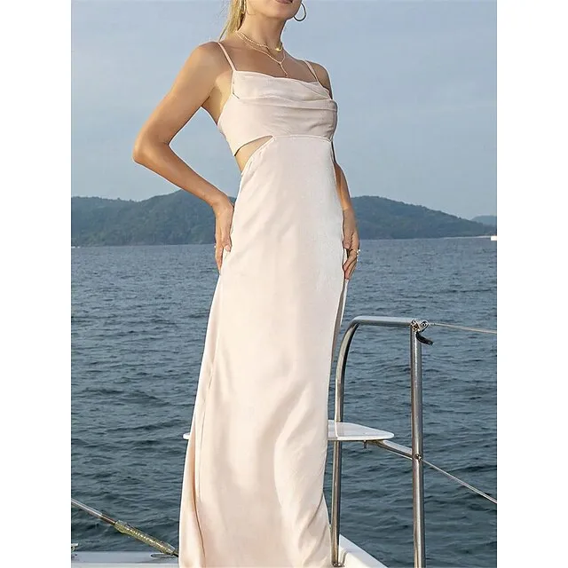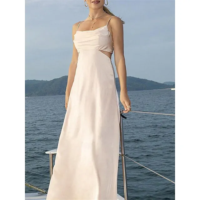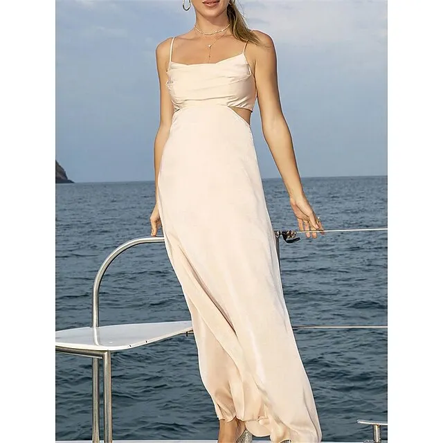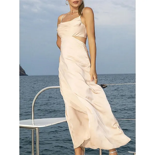 Women’s Casual Dress Swing Dress Summer Dress Long Dress Maxi Dress Backless Street Holiday Date Elegant Streetwear Spaghetti Strap Sleeveless Slim Green Apricot Color S M L Size