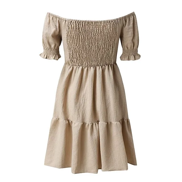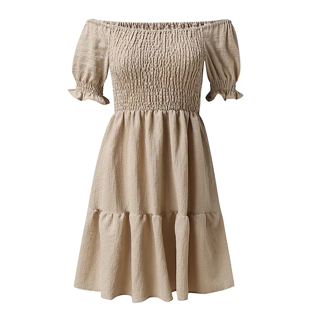 Women’s Casual Dress Swing Dress White Dress Mini Dress Black White Beige Short Sleeve Pure Color Ruched Summer Spring Off Shoulder Elegant 2023 S M L XL