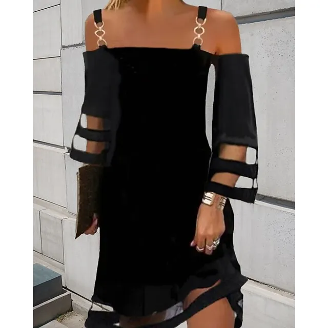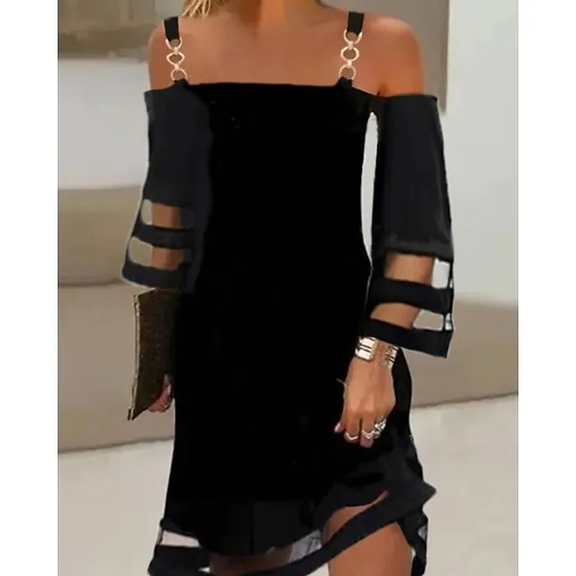 Women’s Casual Sheath Mini Dress Pure Color Ruched Mesh Spaghetti Strap Dress Fashion Modern Wedding Guest Birthday 3/4 Length Sleeve Regular Fit Summer Spring S M L XL XXL