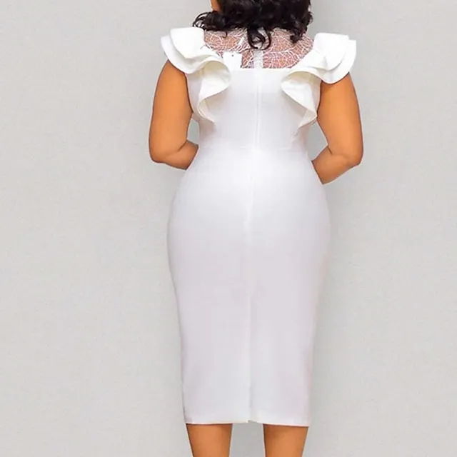 Women’s Cocktail Party Dress Lace Dress Wedding Guest Dress Bodycon Midi Dress White Sleeveless Pure Color Lace Winter Fall Spring High Neck Sexy Weekend Loose Fit