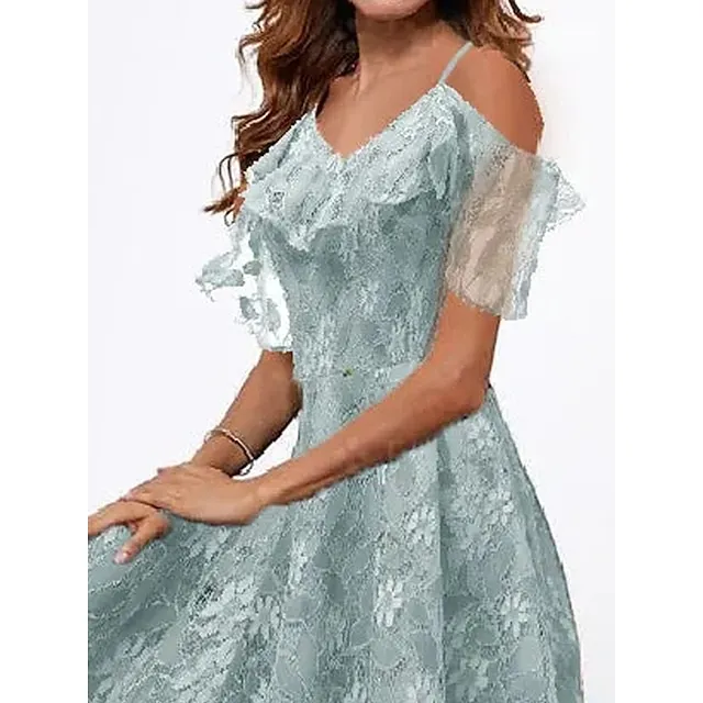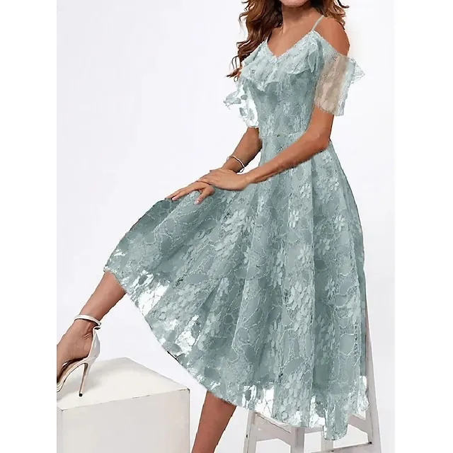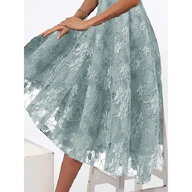 Women’s Party Dress Homecoming Dress Lace Dress Swing Dress Midi Dress Light Blue Short Sleeve Floral Lace Summer Spring V Neck Fashion Wedding Guest Summer Dress