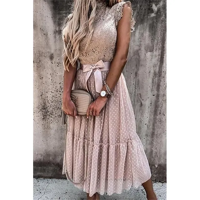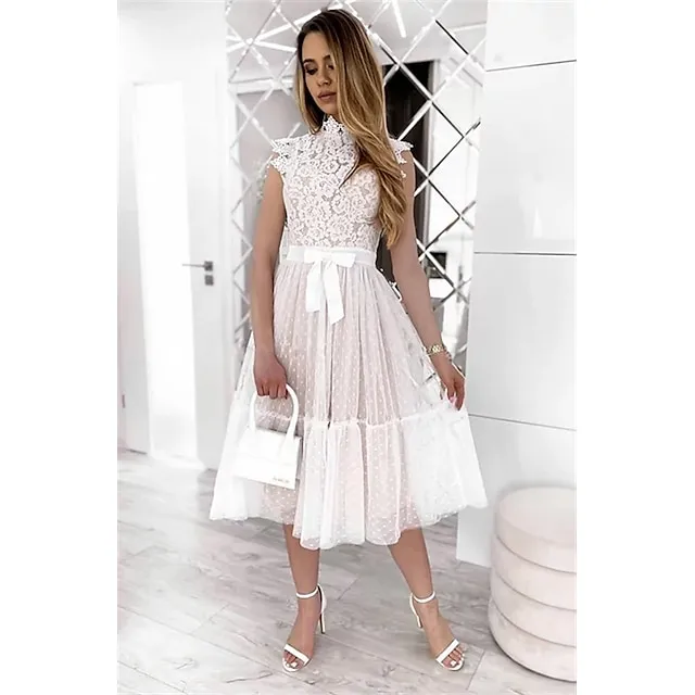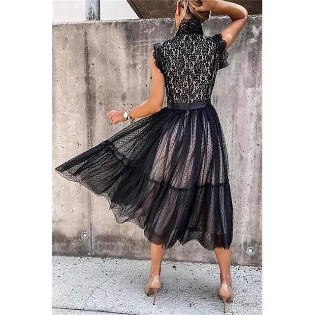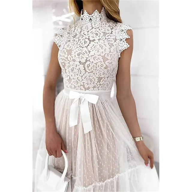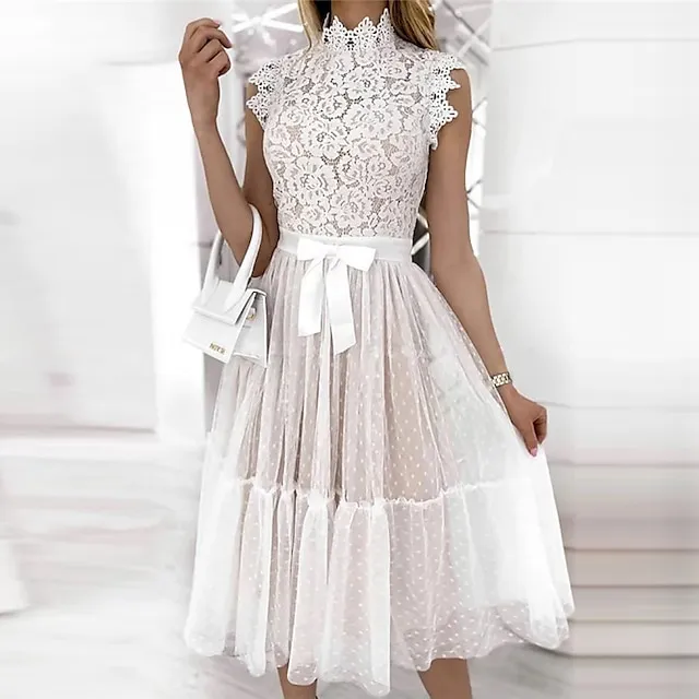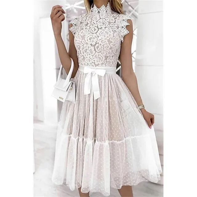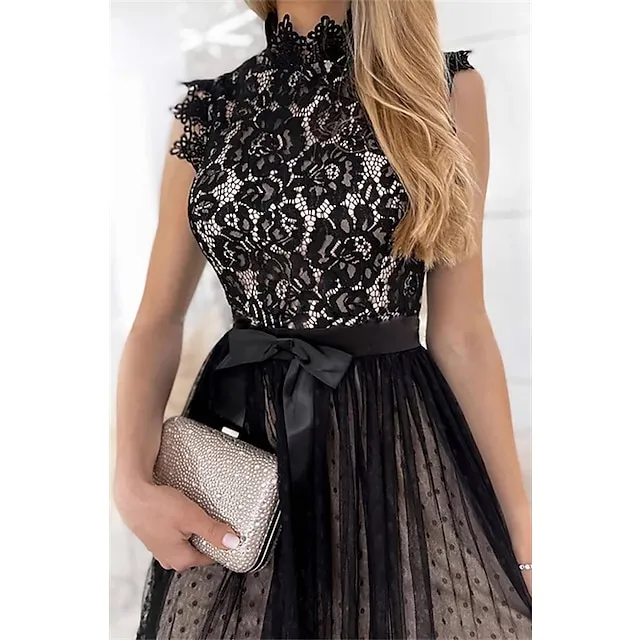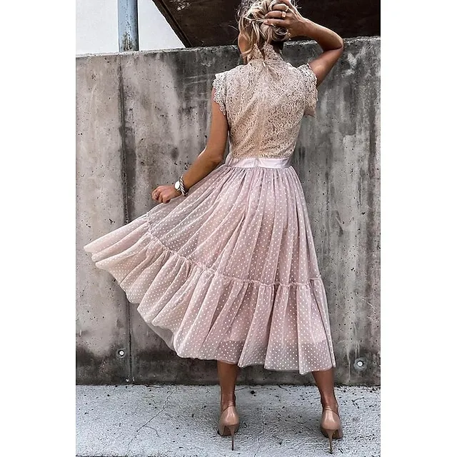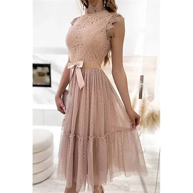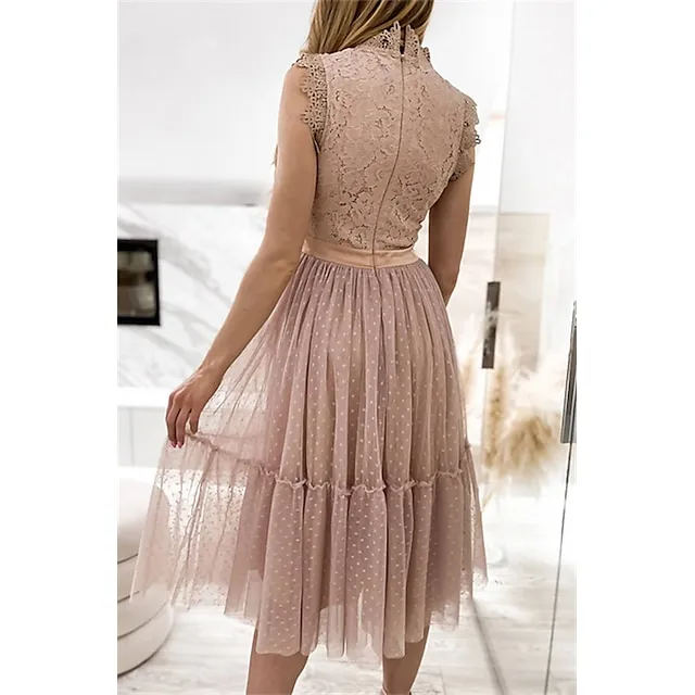 Women’s Party Dress Lace Dress Homecoming Dress Midi Dress Black White Pink Sleeveless Pure Color Patchwork Summer Spring Fall Stand Collar Fashion Party Birthday Wedding Guest 2023 S M L XL XXL