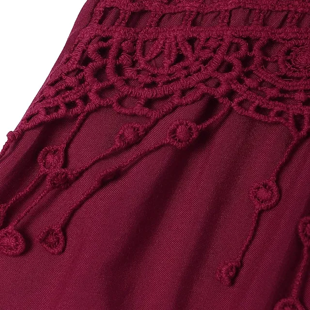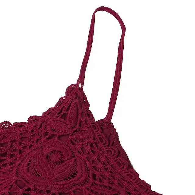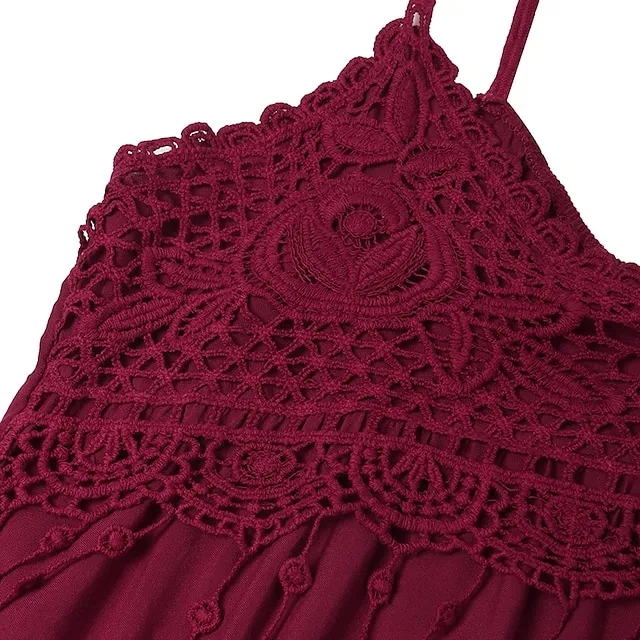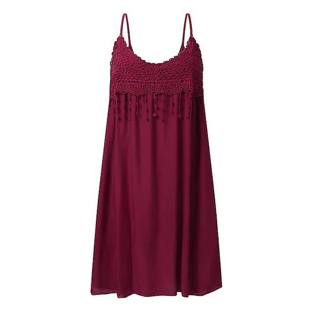 Women‘s Plus Size Curve Strap Casual Dress Solid Color V Neck Lace Sleeveless Spring Summer Dress Mini Dress Daily Fashion Loose Fit
