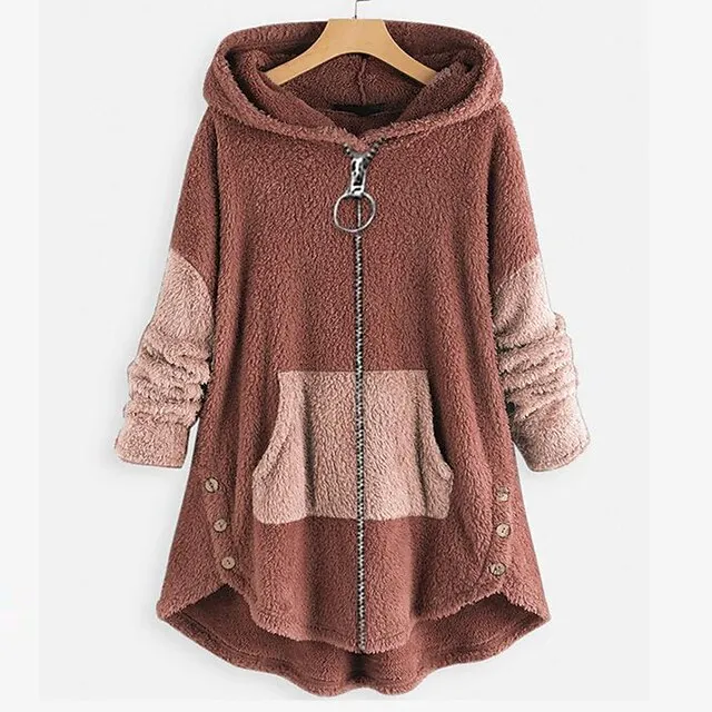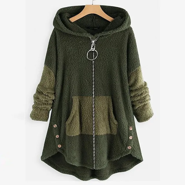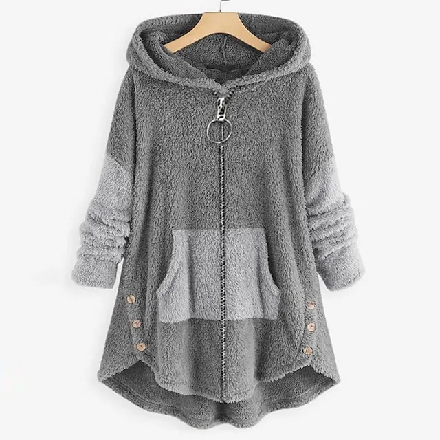Women’s Plus Size Zip Up Hoodie Sweatshirt Zip Hoodie Sweatshirt Fleece Color Block Street Casual Zip Up Front Pocket Peach Light Grey Dark Grey Teddy Pullover Sherpa Fleece Loose Fit Hoodie Long