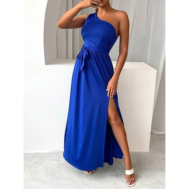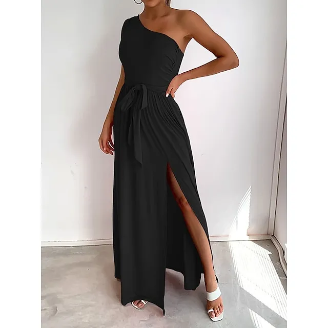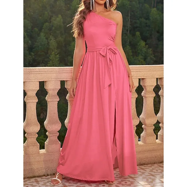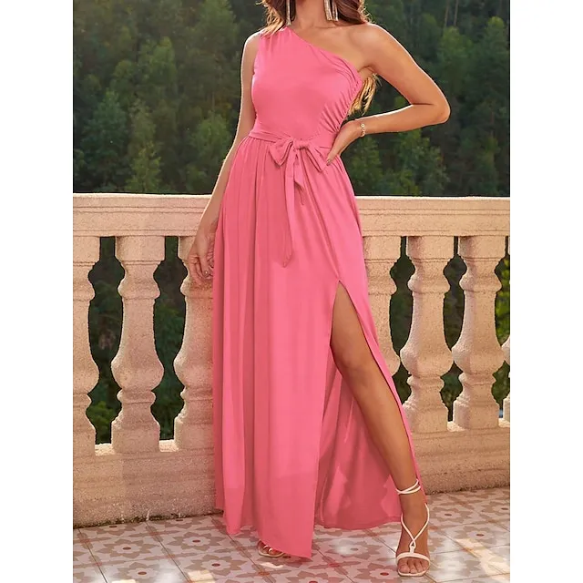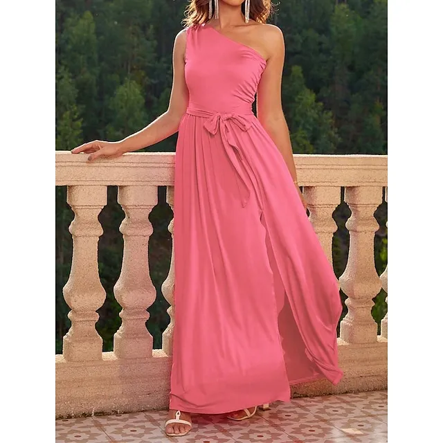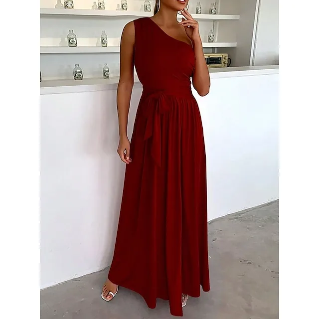 Women’s Prom Dress Party Dress Cocktail Dress Long Dress Maxi Dress Black Pink Wine Sleeveless Pure Color Lace up Fall Winter Autumn One Shoulder Fashion Winter Dress Wedding Guest Birthday XS S M L