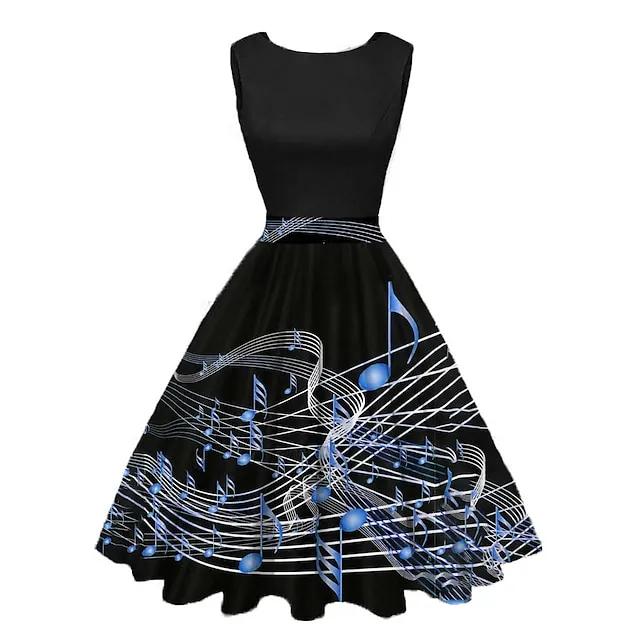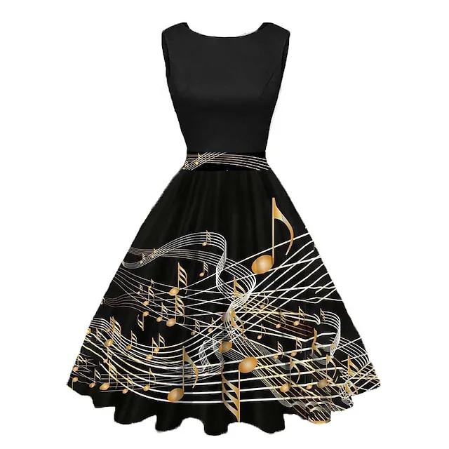 Women’s Retro 1950s Vintage Tea Dresses Midi Dress Daily Date Ruched Print Note Crew Neck Sleeveless Slim Summer Spring 2023 Yellow Blue S M L XL