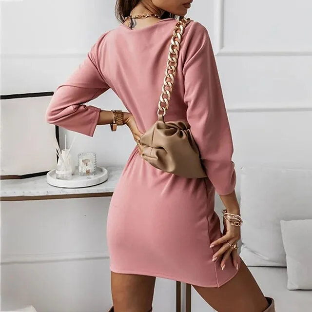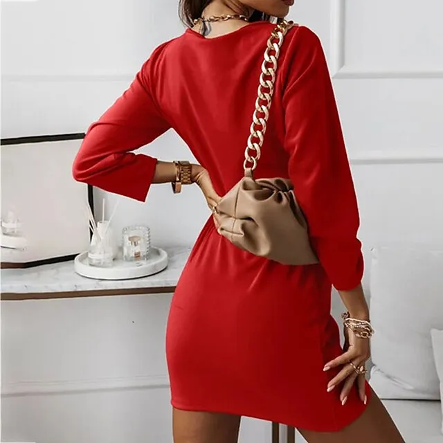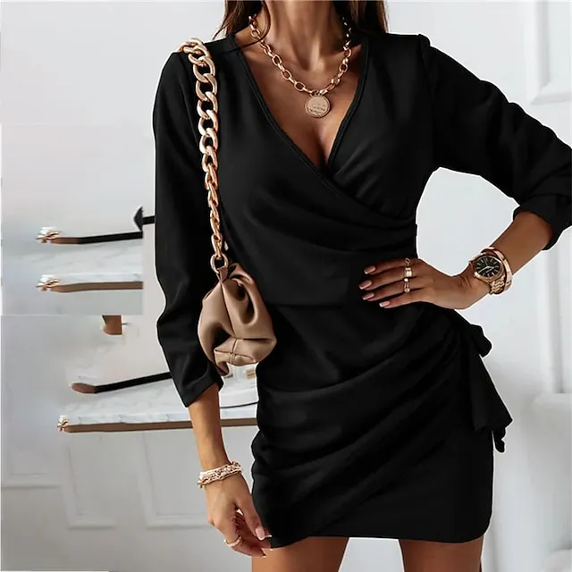 Women’s Sheath Dress Wrap Dress Mini Dress Black Pink Army Green Long Sleeve Pure Color Ruched Summer Spring V Neck Elegant Winter Dress Fall Dress 2023 S M L XL XXL 3XL