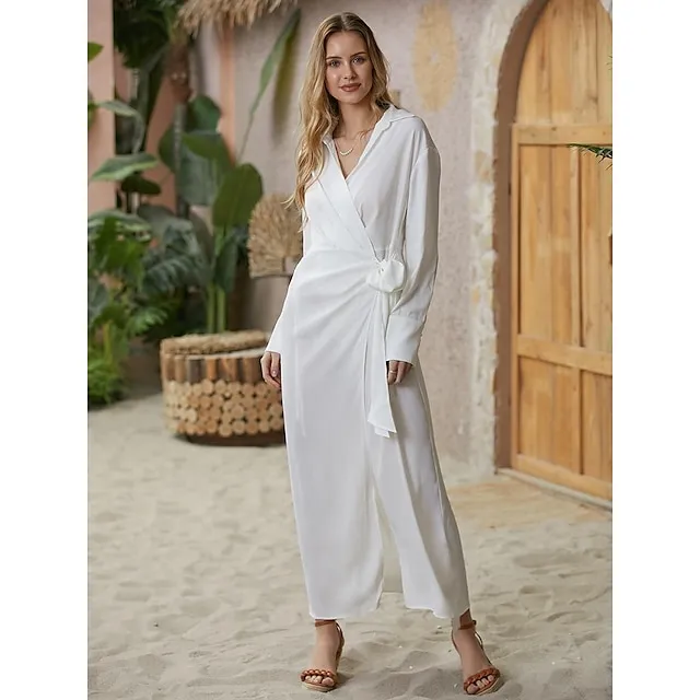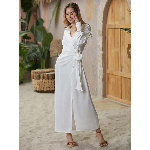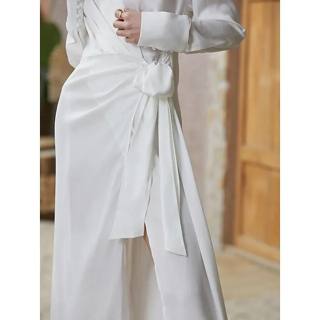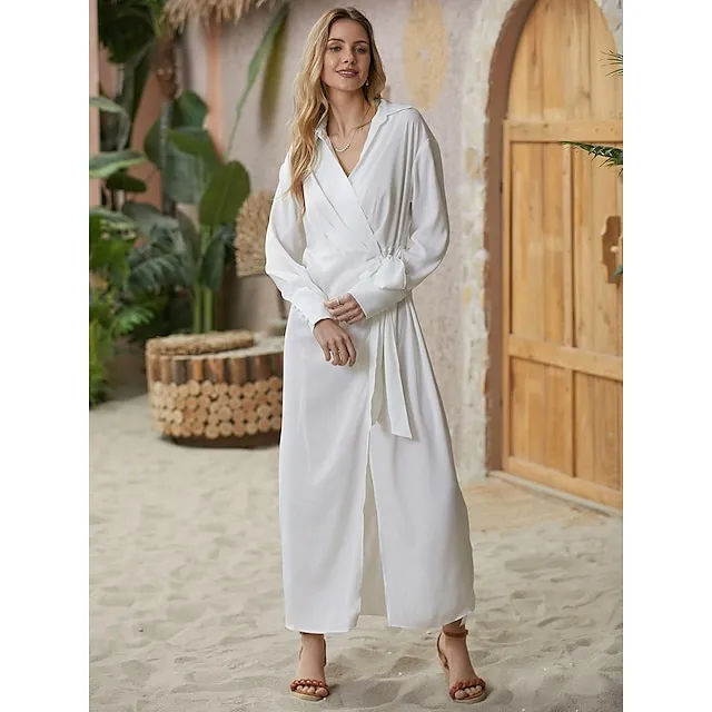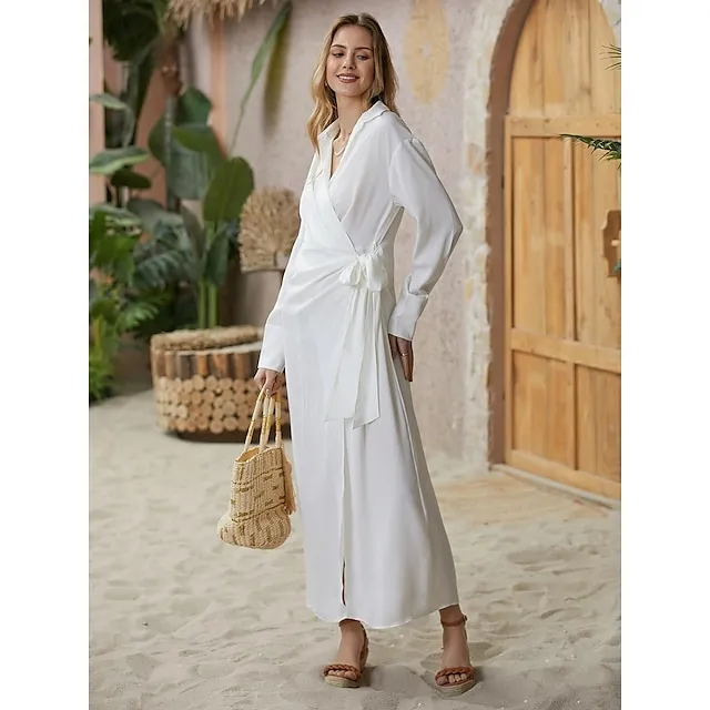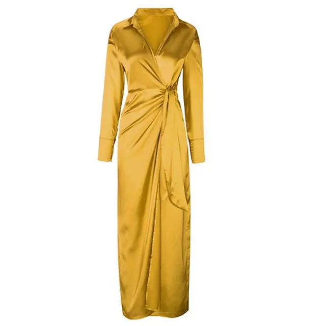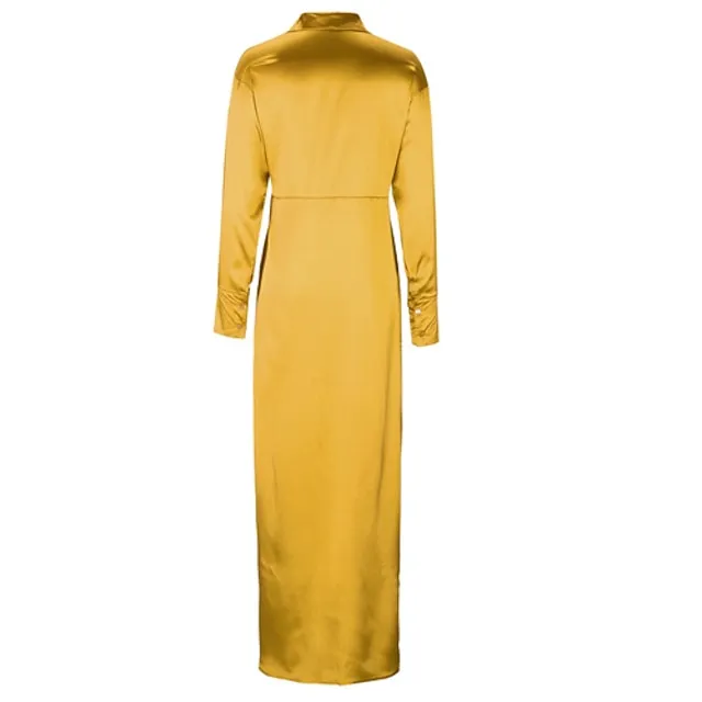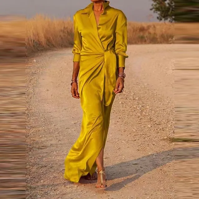 Women’s Shirt Dress Party Dress Pure Color Lace up Split Shirt Collar Maxi long Dress Elegant Sexy Party Winter Dress Long Sleeve Regular Fit Red Gold Summer Spring S M L XL XXL