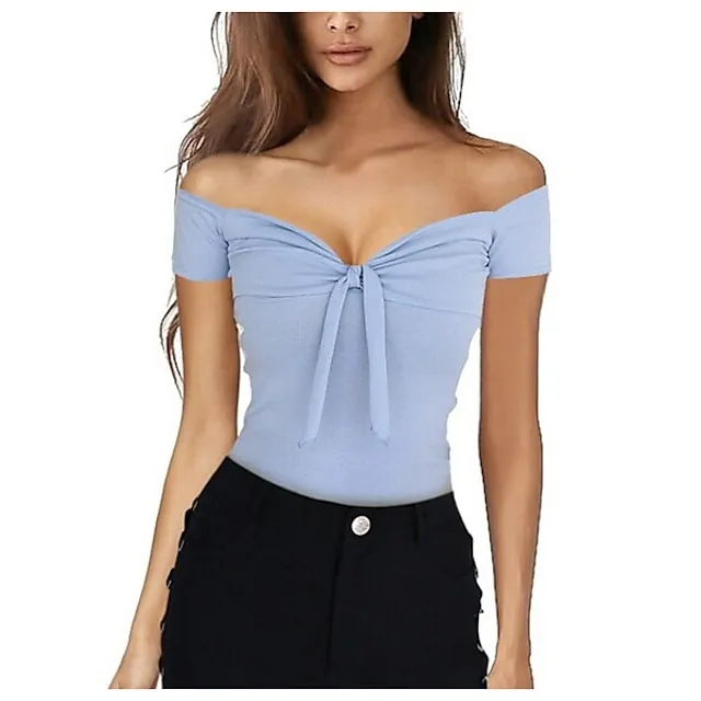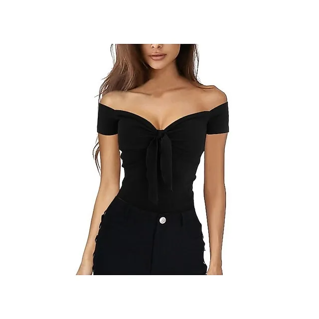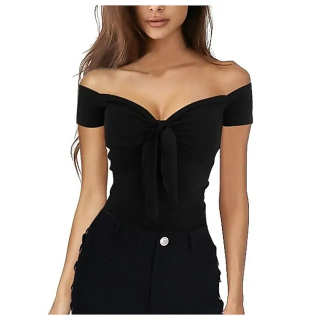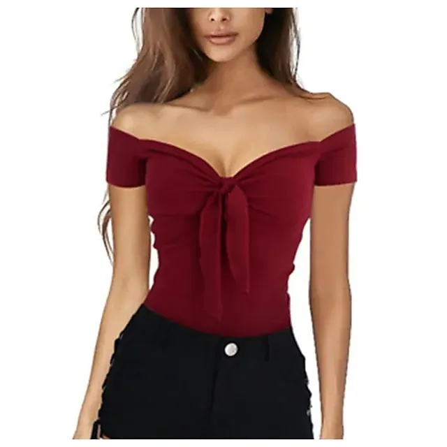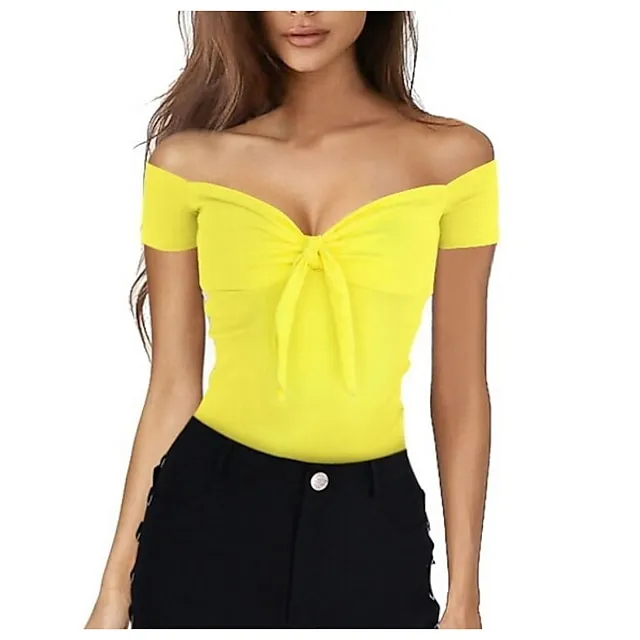 Women’s Shirt Going Out Tops Blouse Concert Tops Black Yellow Wine Graphic Short Sleeve Daily Basic Sexy Casual Off Shoulder Regular S