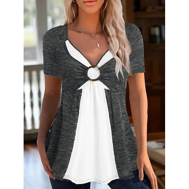 Women’s T shirt Tee Color Block Plain Daily V Neck T-shirt Sleeve Regular Summer Dark Gray