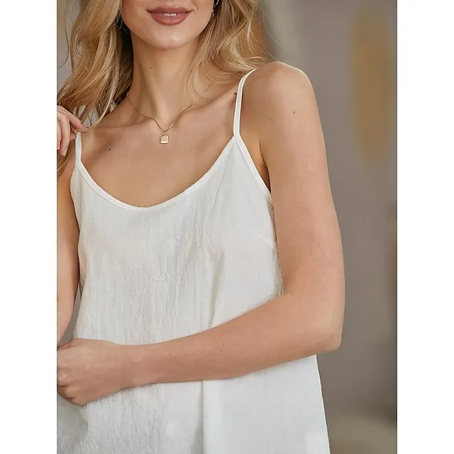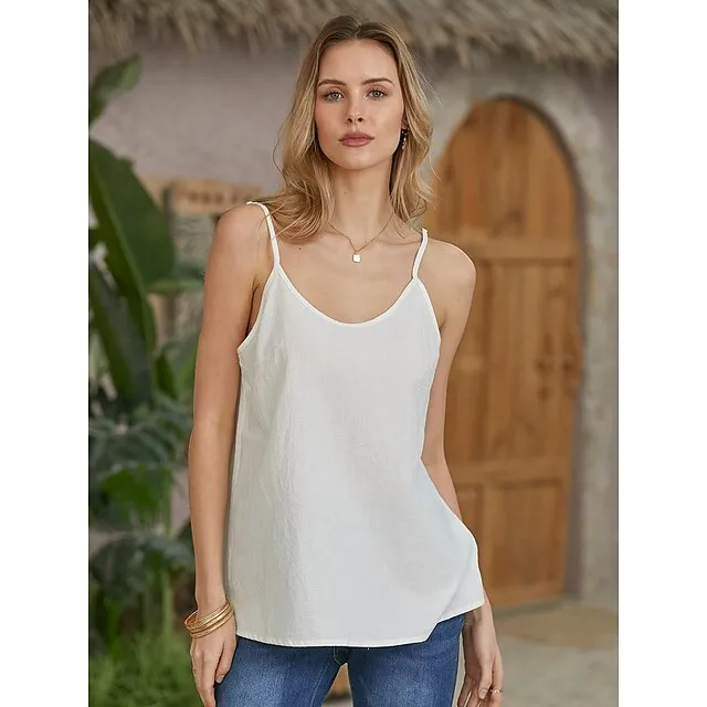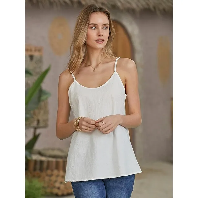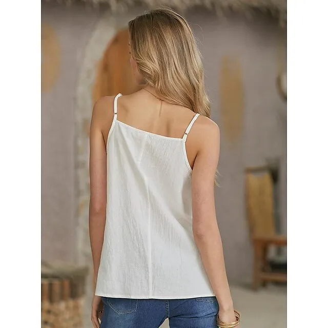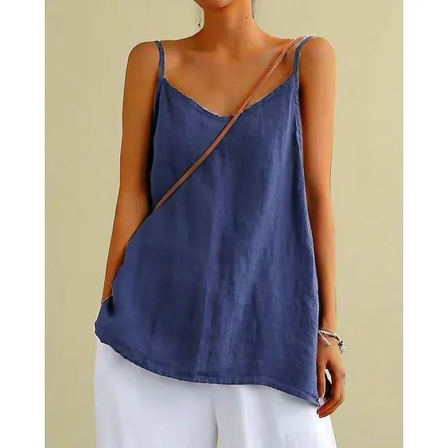Women’s Tank Top Camisole Linen Plain Casual Holiday Going out White Blue Sleeveless Basic Casual V Neck Summer Spring