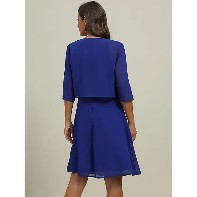 Women’s Two Piece Dress Set Work Dress Wedding Guest Dress Office Wedding Guest Elegant Fashion Ruffle Patchwork Mini Dress Crew Neck Half Sleeve Plain Regular Fit Blue Summer Spring S M L XL XXL