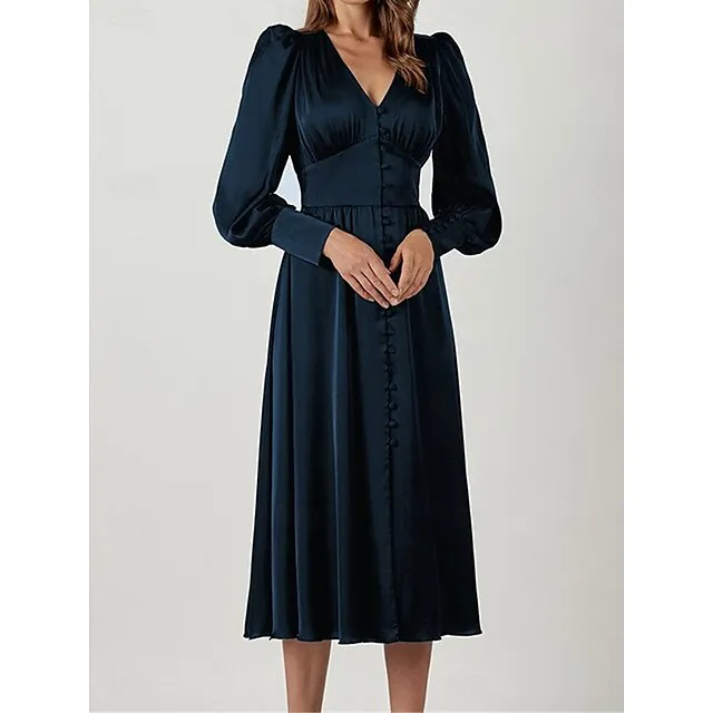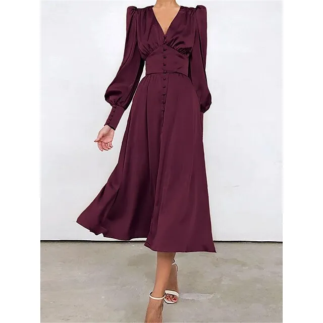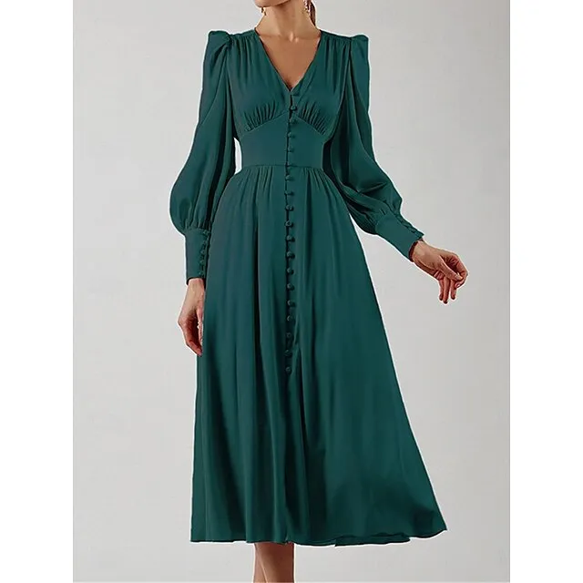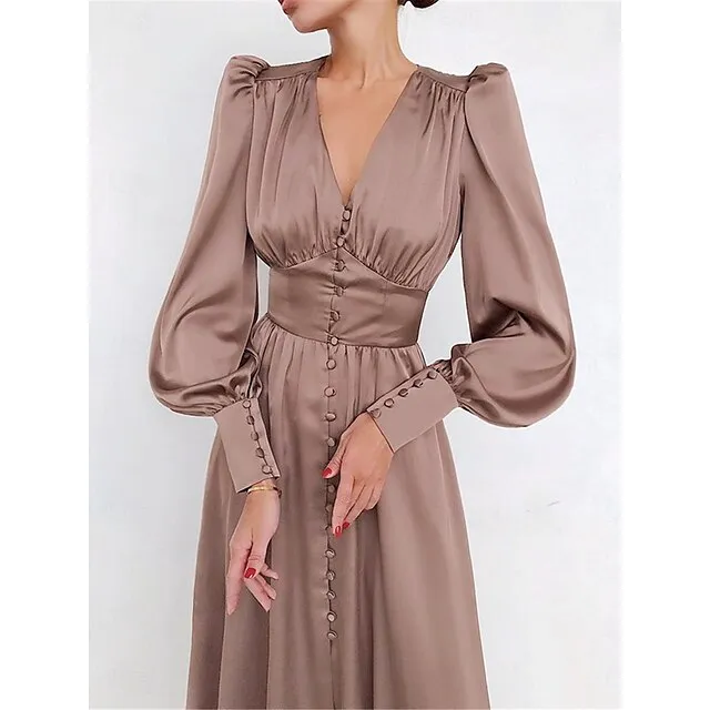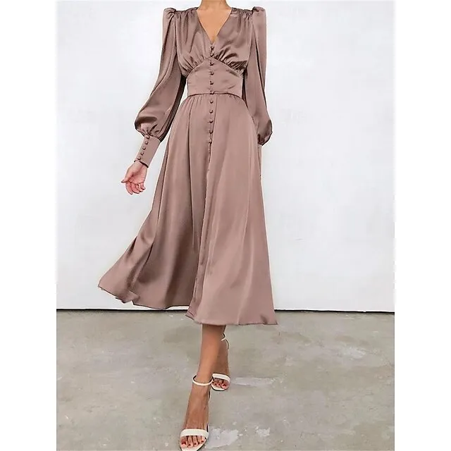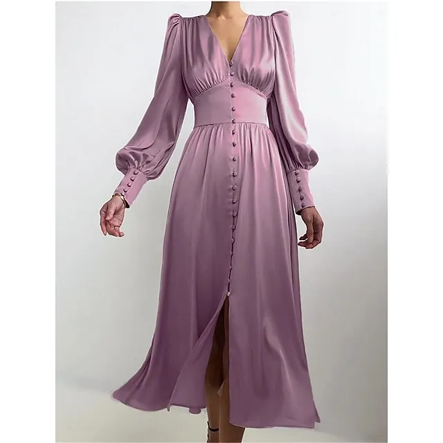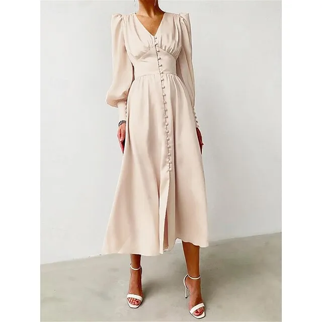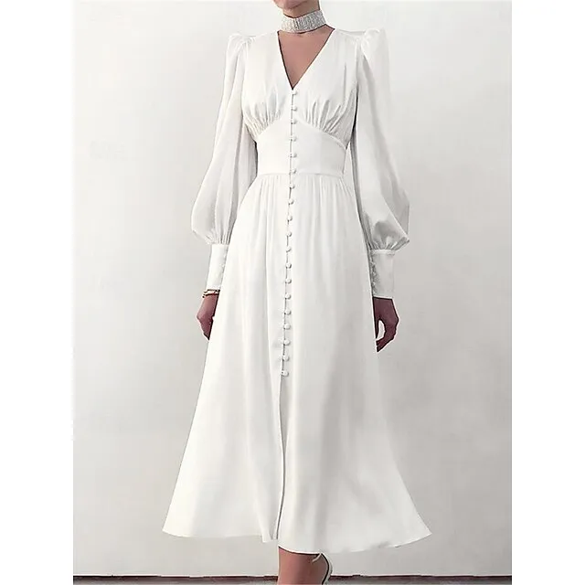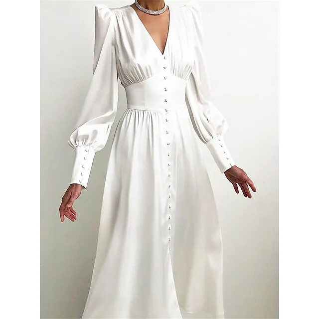 Women’s White Dress Casual Dress Swing Dress Long Dress Maxi Dress Button Holiday Date Vacation Streetwear Maxi V Neck Long Sleeve Regular Fit Black White Pink Color S M L XL Size