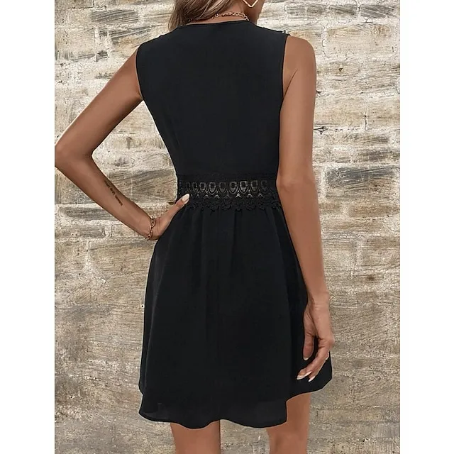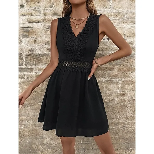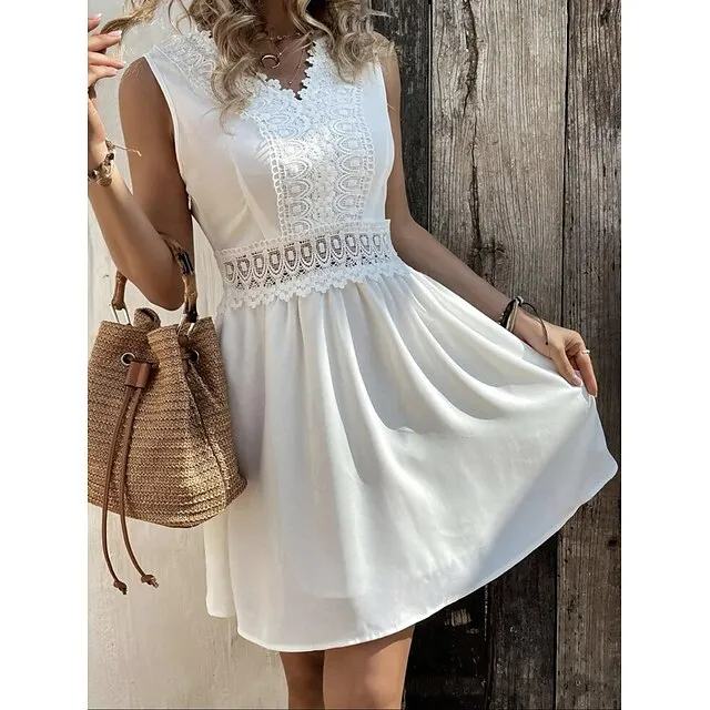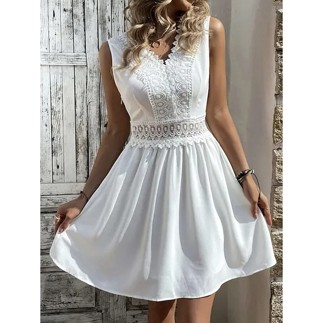 Women’s White Dress Lace Dress Summer Dress Mini Dress Lace Street Date Streetwear V Neck Sleeveless Regular Fit Black White Color S M L XL 2XL Size